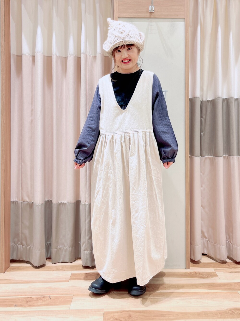 おはようございます☀︎ いつもご覧頂きありがとうございます😊 ティアードワンピース色違いコーデ ジャンパースカートと合わせてガーリーコーデ🐈⬛ ジャンパースカートは前後着になっています♫ 短めの丈なので低身長の方にもオススメです🫰🏻