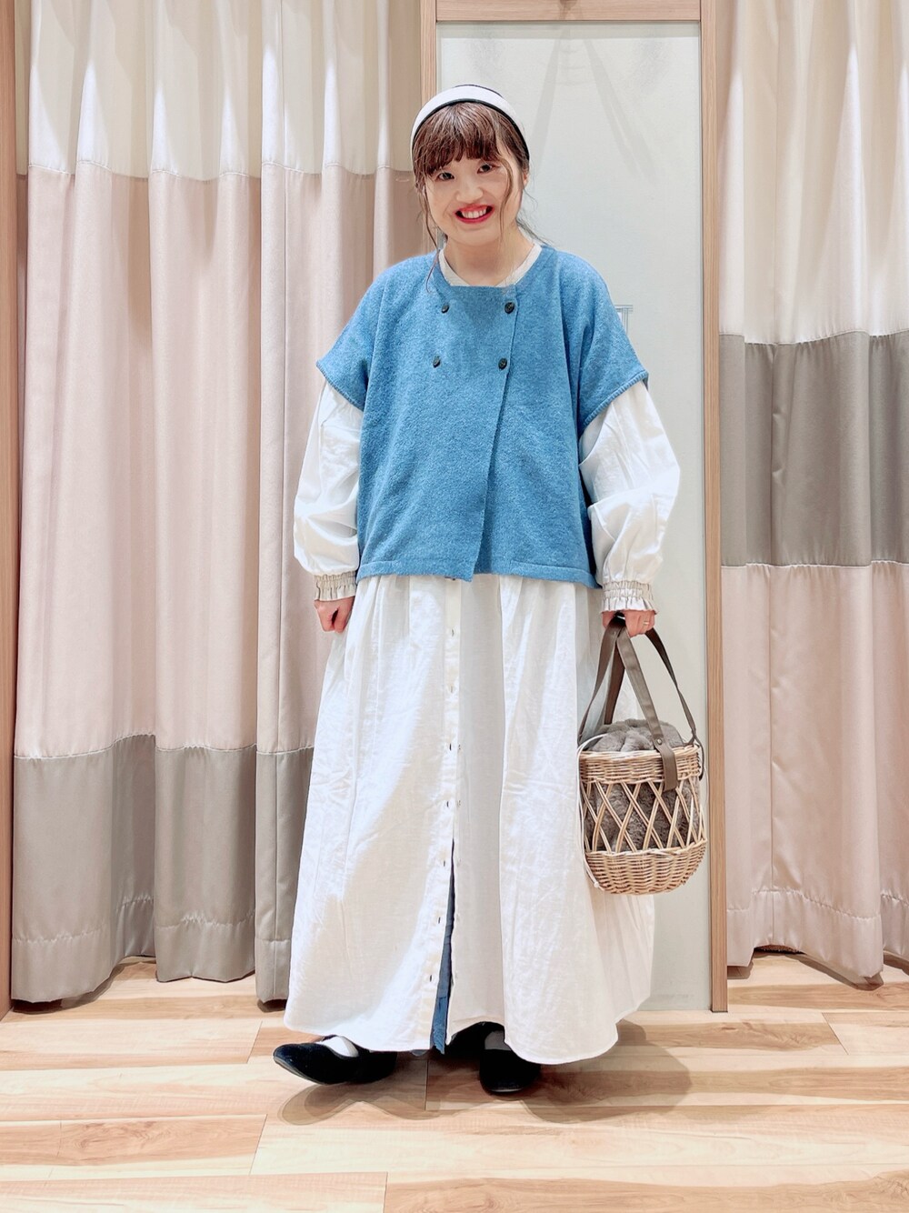 えりのベスト「ダブル釦ニットポンチョベスト」を使ったコーディネート
