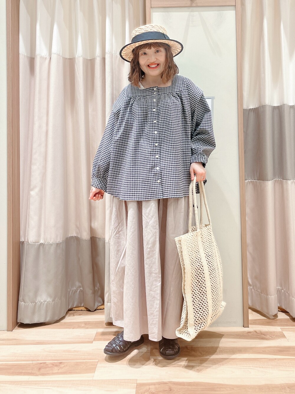 えりのシャツ/ブラウス「柄アソートスクエアネックブラウス」を使ったコーディネート