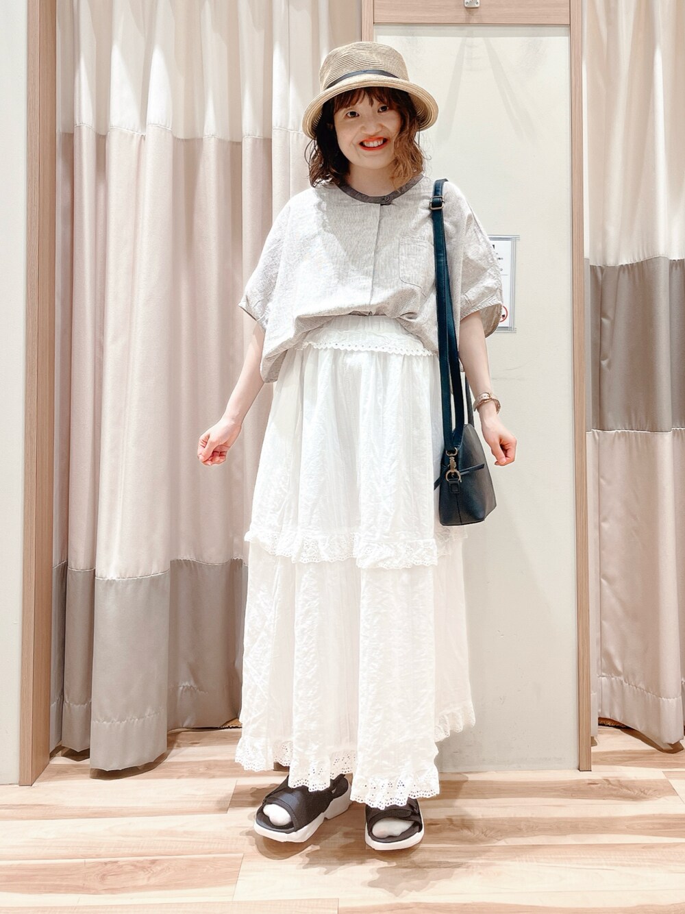おはようございます☀︎ いつもご覧頂きありがとうございます😊 ブラウス色違いコーデ スカートと合わせてガーリーコーデ🦙 ブラウスはシンプルなデザインですが ボトムをレースのものにしたりと ガーリーアイテムと合わせても可愛いです♪ ※産休中のためお店には出勤しておりません。