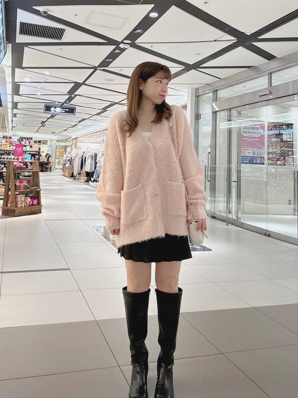 chinami(OLIVE des OLIVE HEP FIVE)のカーディガン/ボレロ「ブークレ起毛ロングカーディガン 1032050040」を使ったコーディネート
