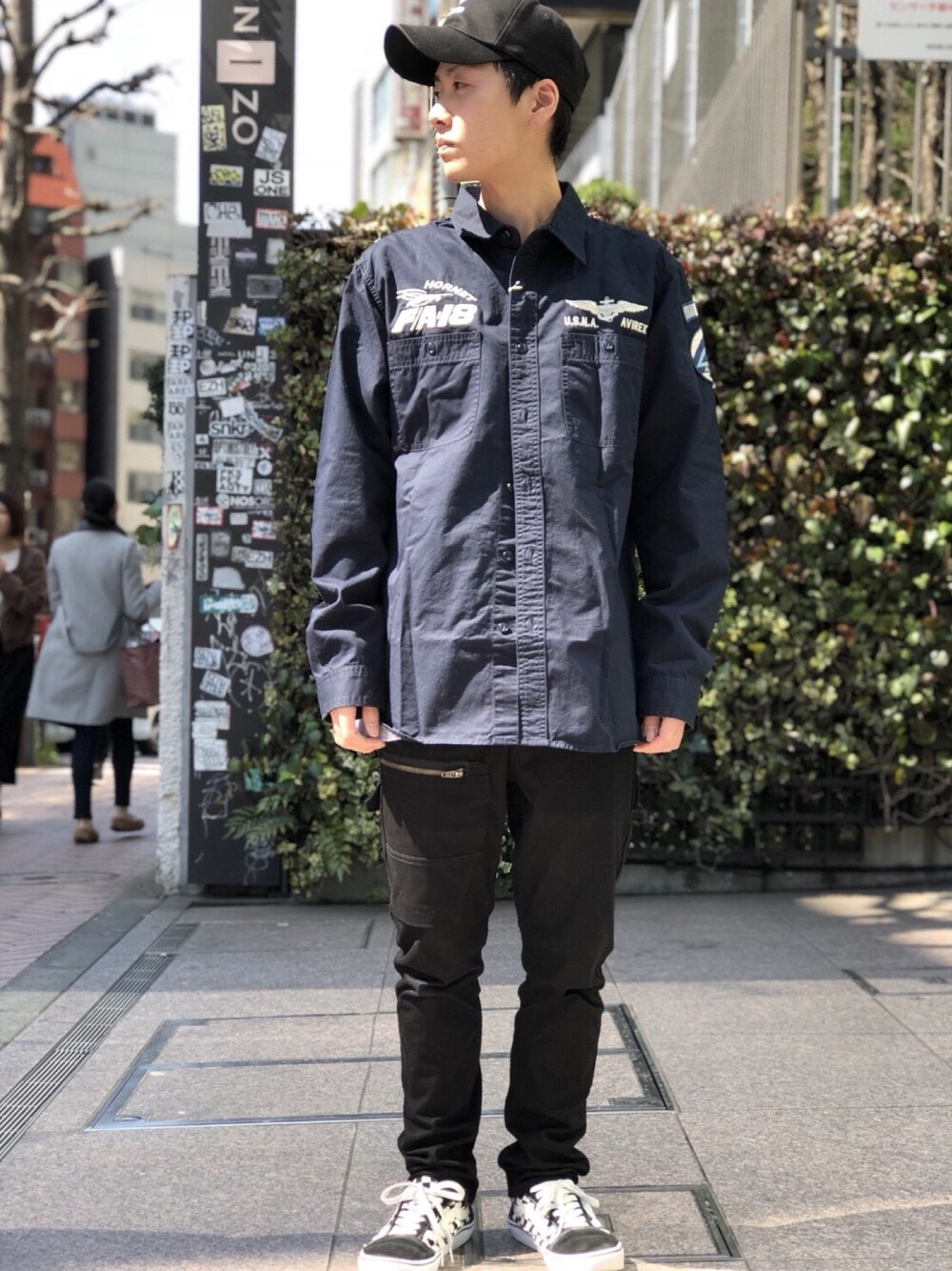 りいち(AVIREX 新宿店)のシャツ/ブラウス「AVIREX/アヴィレックス/長袖 刺繍シャツ USネイビー/EMBROIDERED SHIRT U.S. NAVY」を使ったコーディネート