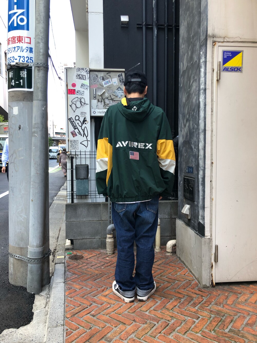 りいち(AVIREX 新宿店)のナイロンジャケット「BAGGY FIT HOODED TEAM JACKET / バギーフィット フーディー チーム ジャケット / AVIREX / アヴィレックス」を使ったコーディネート
