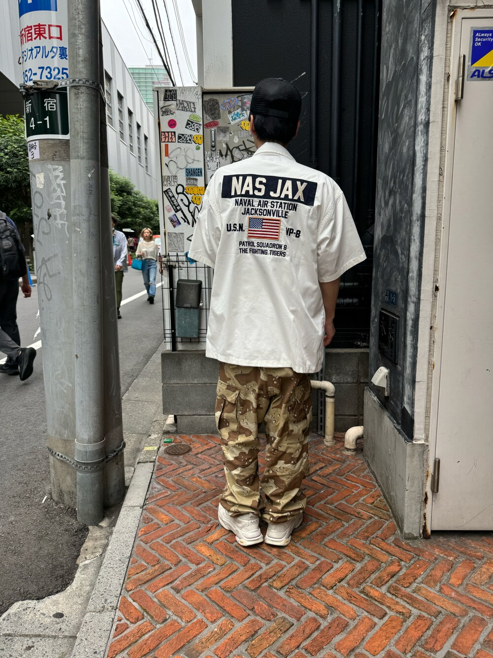 りいち(AVIREX 新宿店)のシャツ/ブラウス「【AVIREX/アビレックス】「NAS JAX」バックワッペン刺繍デザイン クールマックス ミリタリーシャツ/半袖シャツ」を使ったコーディネート