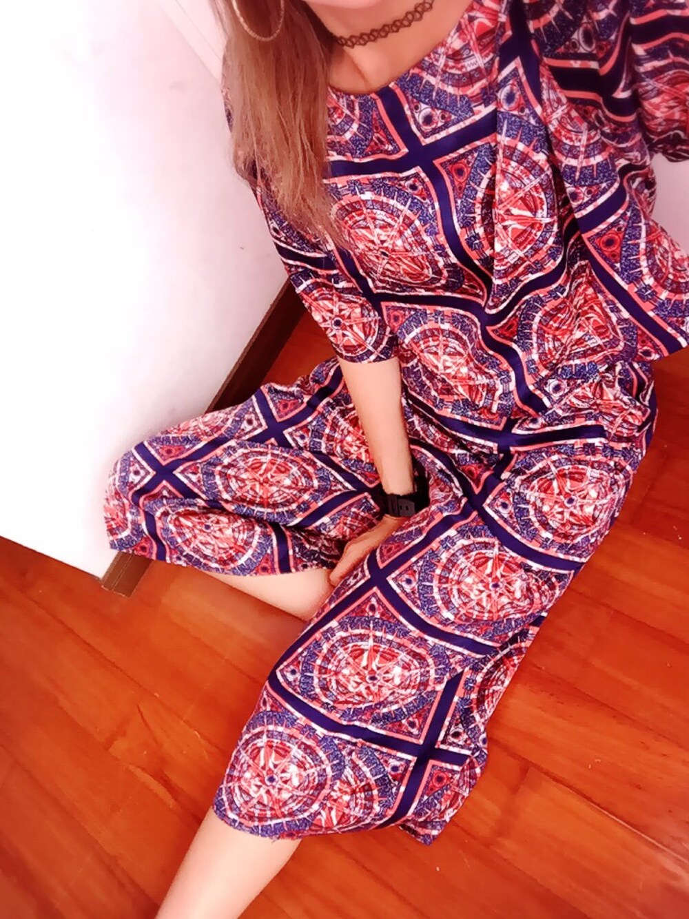 オレンジ系のトップスを着用したレディースの夏コーディネートの1枚目の写真