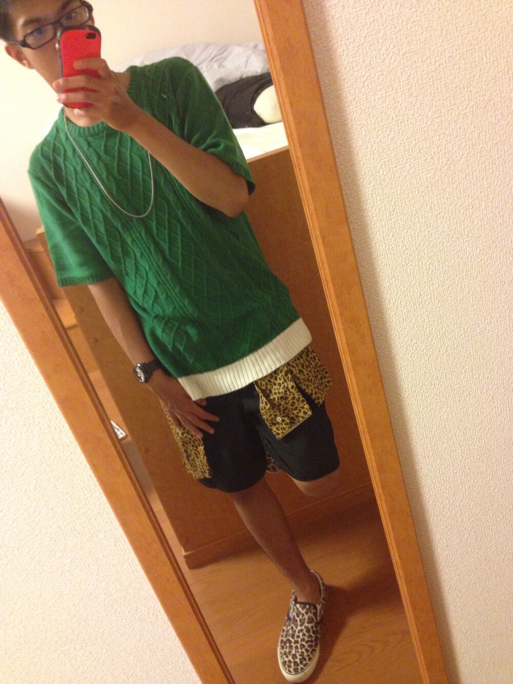 目立つようにヒョウ柄のシャツを腰巻にしてるのがポイントです✨