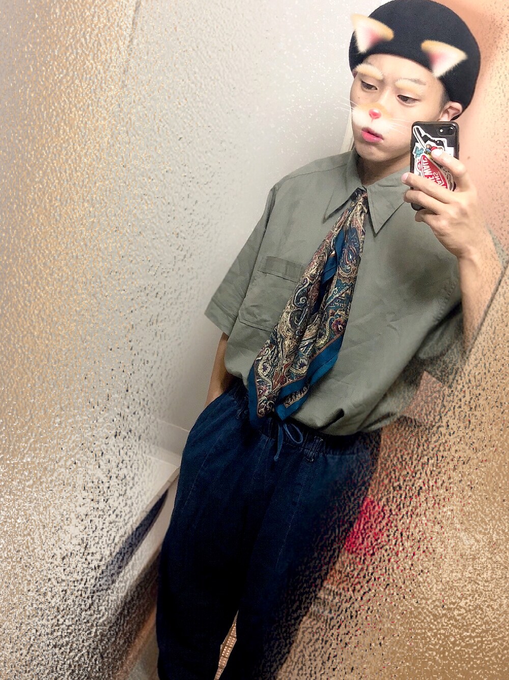 古着屋で買った半袖シャツとスカーフで 大人めコーデ
