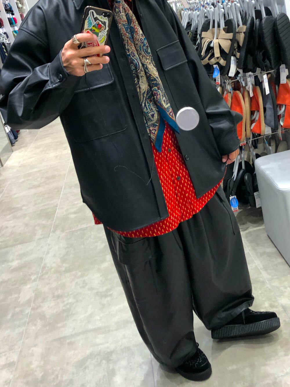 秋が近づいてるので レザーアイテムでセットアップにしてみました🎶全体のシルエットを重視してます