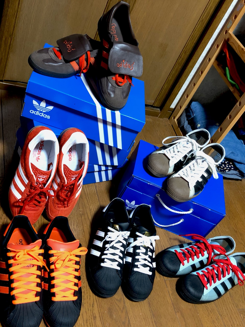 閲覧ありがとうございます! 今日は最近のマイブーム adidasスニーカーを載せようと思いました スーパースターからハマり 個人的にどうしても欲しいものだけ セレクトしました🎶 右にある 白と青の2種類は最近ゲットした スーパースターblondyです スケーターのブロンディマッコイが デザインしたもので素材感が楽しい 1足になってます☺️