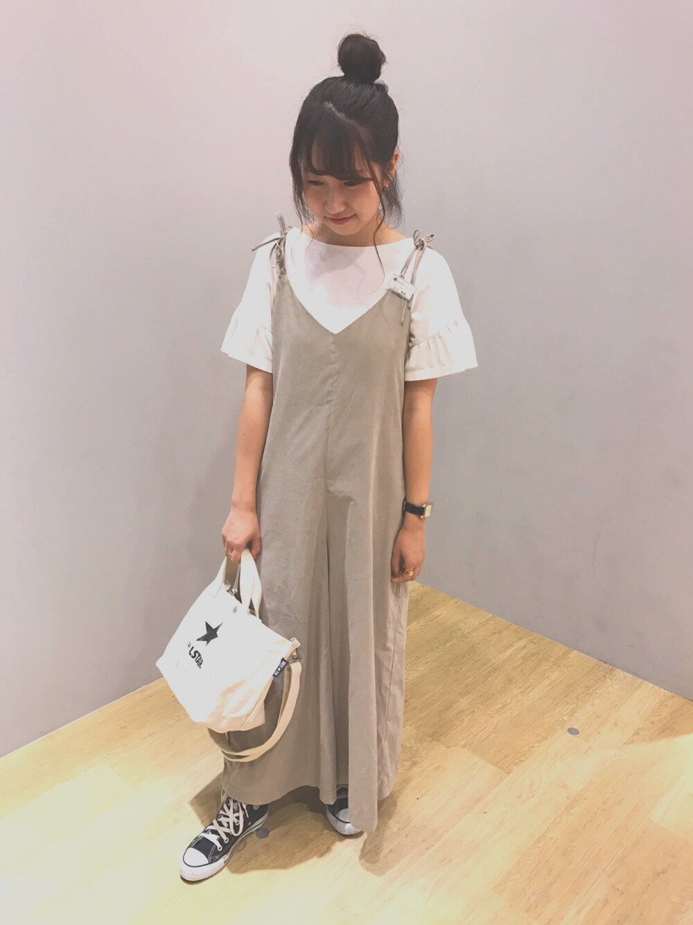 ピーチスキンのサロペット×コンバースコーデ👟💕 楽な服が1番☺️