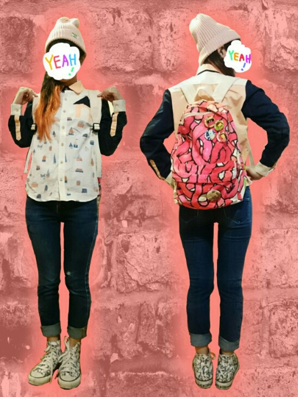 まずはコーデについて。 おなじみNIRAME.COさんのしゃつと、無地のリュックに自分でペイントしたオリジナルリュック!腸柄です。ピンクでポップにー!モチーフとして内臓が好きです。 今回まるこさんリスペクトで「YEAH!」で顔隠してみました(笑) うーんそれにしても最近ピンクばかりですね、桜咲く前から浮かれてるようです。 うぇあーでいぇあー! さてこっから本番じゃ! ↓ 先日、素敵洋服屋さん「NIRAME.CO」さんのイベントに行ってきましたーー! 会場はNIRAME子大集合って感じで、 もーwearでお見かけしたことのある個人的に勝手に有名人な方々が、 それはそれは華々しくいらっしゃりましたのです! もーこりゃ花金の捧げ甲斐があるってもんですよ……! テンション爆上がり……!ッタッハーーー! 特にいつもwearで仲良くしてくれていた、まるこさんとの出会い。 ほんとーに嬉しくって!もー何かとお喋りしに近づき!!何度もカンパーイしましたよー!!! wear上ではたいがい「yeah!」で隠されているまるこさんのお顔は綺麗でした。動きはどことなく小動物系でかわいらしく。そしていじられたがりの一面もあり!!!!!!!!! 怒濤の「水っ腹」と「肩幅」発言に笑いが止まらない……! そしてNIRAME.COといったらの、うるぐすボーイ。NIRAME子の名を欲しいままにする肌つやっつやのヤングボーイ。 彼のオフショットがありますので特別公開します!こりゃもー「このアイドルは誰なの!?」ってマダム殺到ですよ! 特技は鼻からジャムを出すことだそうです!嘘です!! 他にも、 まるこさん、TSUさん、私、のトリプルにらめっ娘。で写真を撮ったり…… ぎどうアナウンサー(に似ている素敵なコンシェルジュ?)とお話したり…… おもしろ&キュートなにらめっこガールズたちとワイワイとお話しながら無限にポップコーンつまんだり…… 等々…… たくさんの楽しい出来事、出会いや笑いがありました! こんな素敵な一日を提供してくれたNIRAME.COさん、もとい上野さんとデザイナーさんには感謝感謝ですねー(^人^) はー楽しかったなぁ余韻余韻余韻~ 楽しすぎるがあまり、終始異常なテンションの968でしたとさ!アデュー!
