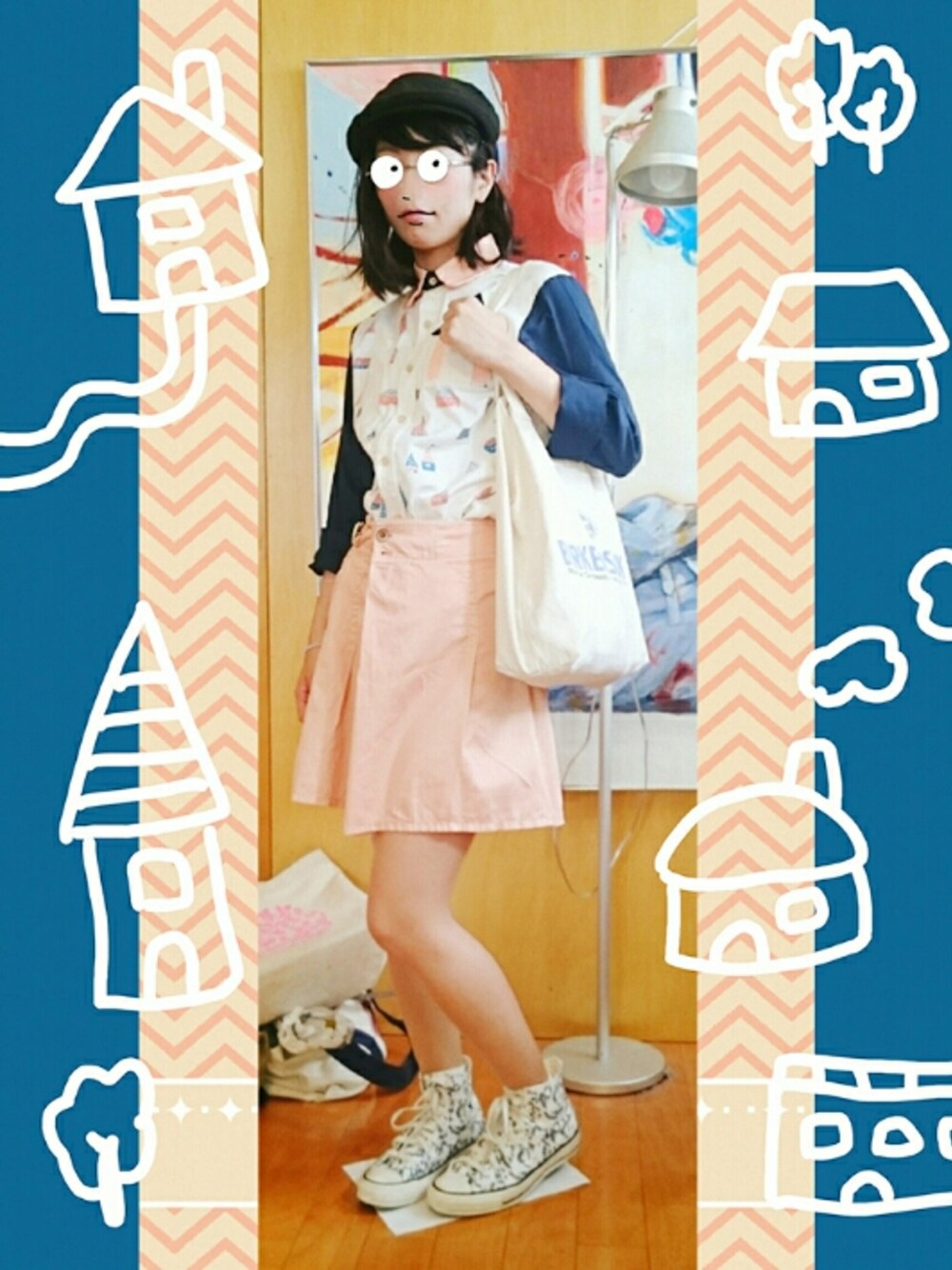 NIRAME.COさんに行ってきました! シン・ゴジラを4回見たというP氏、最近wearをはじめたしまうまおじさん、フレッシュ仲良し男子大学生二人組に、トークスキル高い店員さん二人に囲まれて、 乙女ゲームかな?というくらいの逆ハーレムでした。 「しかし残念なことにみんな女に興味がなく…!?」(怪しいバナー広告風) この日のコーデは、ゴルフとかテニスとかね、なんかちょっとスポーティーな感じにしたつもりなんですよねー、うん。キュロットがそんな感じかなって(曖昧)。 大好きなピンクコーデですが、カチッとめのシルエットと、父から借りたハンチングで女の子っぽくなりすぎないようにしました。 …えと、あの日くさいと思ったら私ですにんにくくさくてほんとごめんなさい🙇 そんで、買うつもりで行かなかったのに、シャツを買ってもうた。 あまりにかわいいので1000枚売れると思う。それなのに生地少ないんだよ!みんな急いで!すぐなくなるからね!めっっっっちゃくちゃかわいいから!やばいって…意味わかんねぇからな?かわいすぎて。この語彙力のなさみてわかるでしょ?やばいってことわかるっしょ? かわいすぎてその場で暴れてシャツをくちゃくちゃ丸めて食べたいと思った。怒りすら感じたよね。かわいすぎて。 何言ってるかわかんないからこのへんにしとこう。