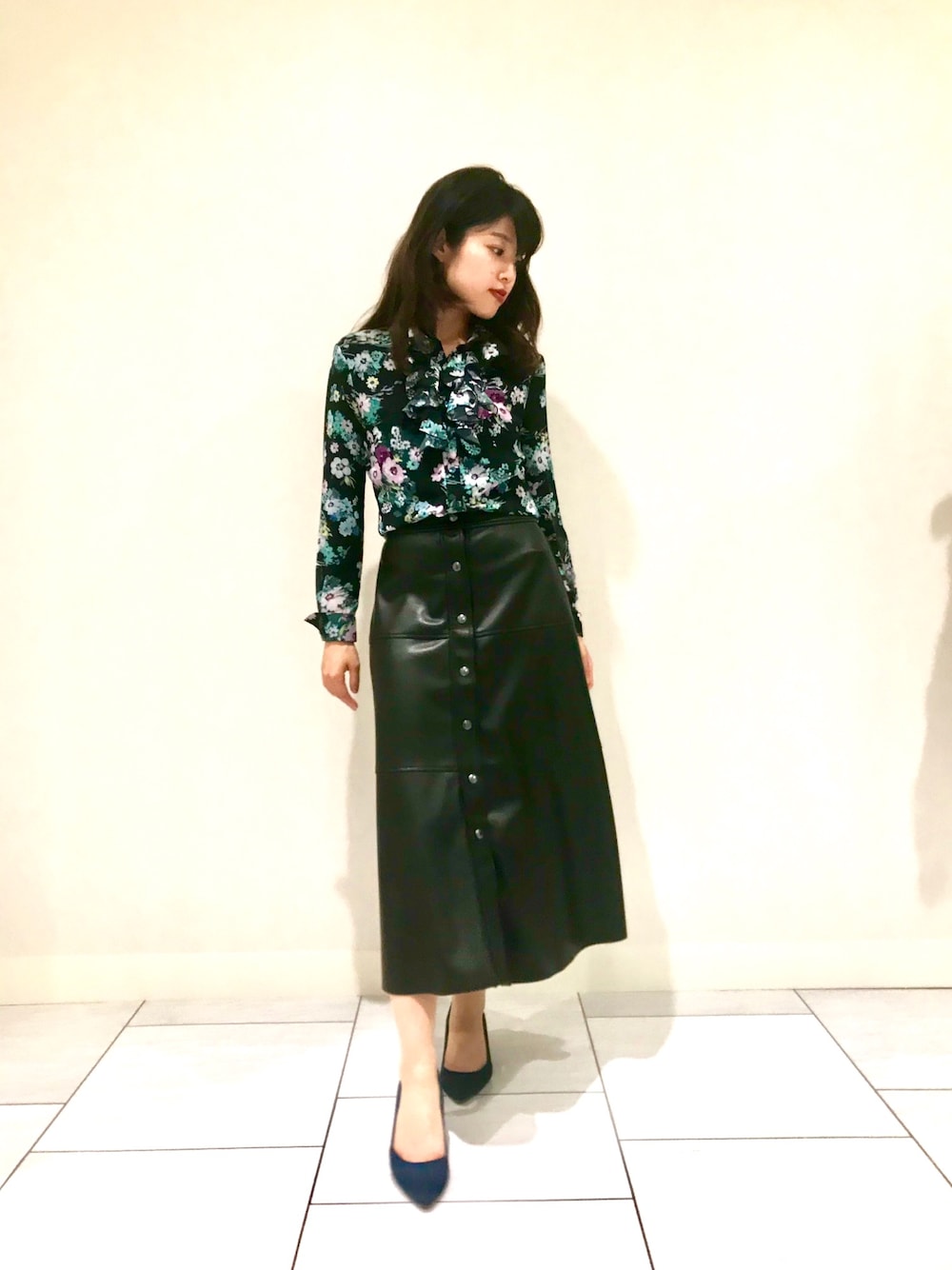 cojiのシャツ/ブラウス「フラワープリントフリル襟長袖ブラウス」を使ったコーディネート