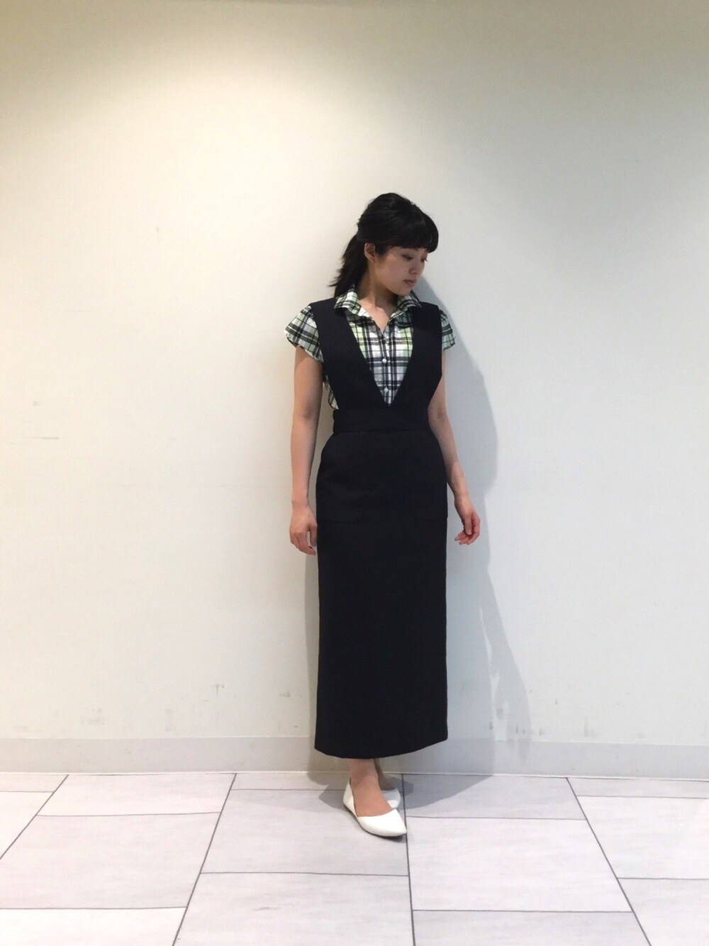 シャツ品番 10-11-04-113 0サイズ パンツ品番 30-11-08-506 1サイズ ナラカミーチェの定番であるイタリアンチェックシャツを トレンドボトムで新しいイメージにしました。