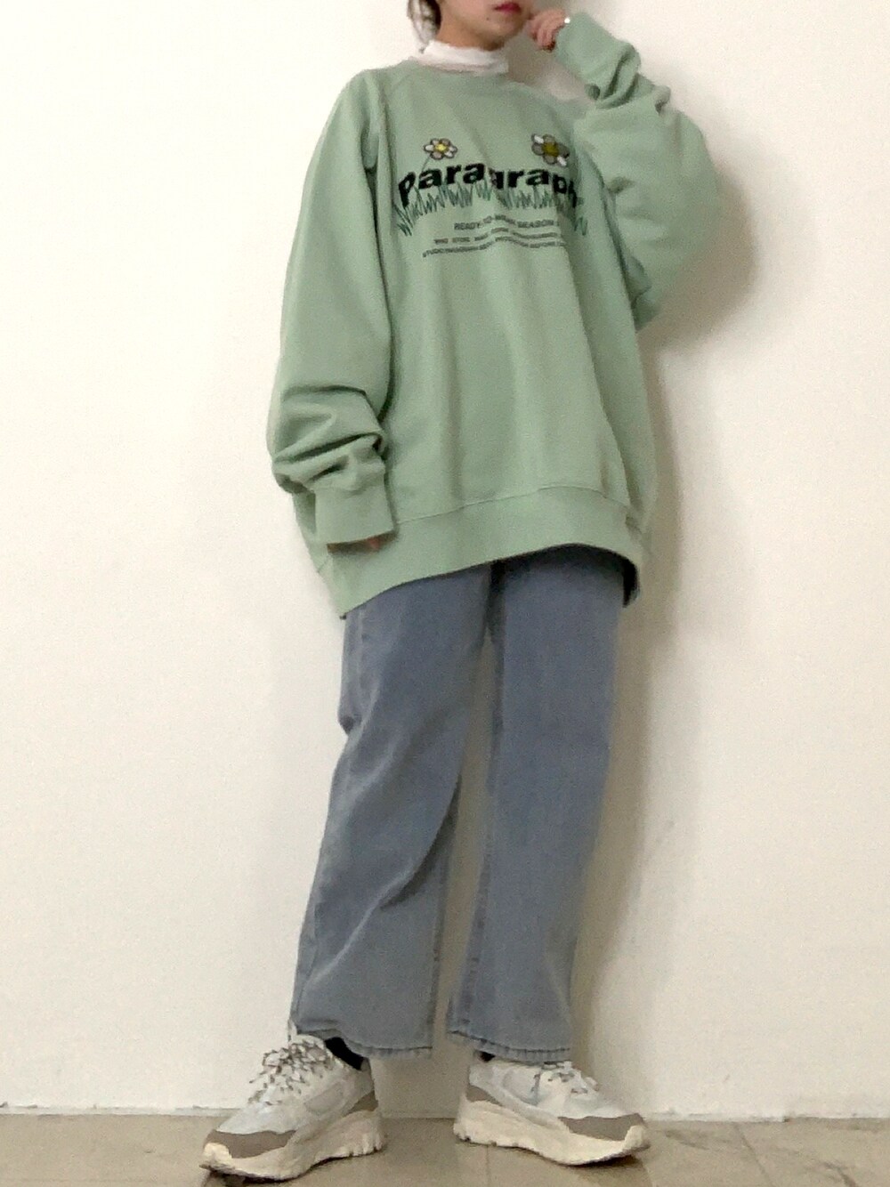 ------------------------- sweat : Paragraph (zozo : lc973🔍) ------------------------- ご覧いただきありがとうございます🔥 本日は大人気Paragraphのスウェットを着てみました🐸 今日もグリーンコーデ🌿 淡い色のデニムと厚底スニーカーで 韓国×ストリートっぽく🐑💖 このくすみミントカラーとサックスブルーがとっても良いトーンで合ってて、全体的に淡色になるので カラーコーデかつストリートブランドでも ふんわりやわらかくみえて女の子らしさもありあり💖 おすすめの色合わせですので ぜひやってみてくださいネ〜🙈💕 ___________________ instagram ▶️ 9716_ari ___________________