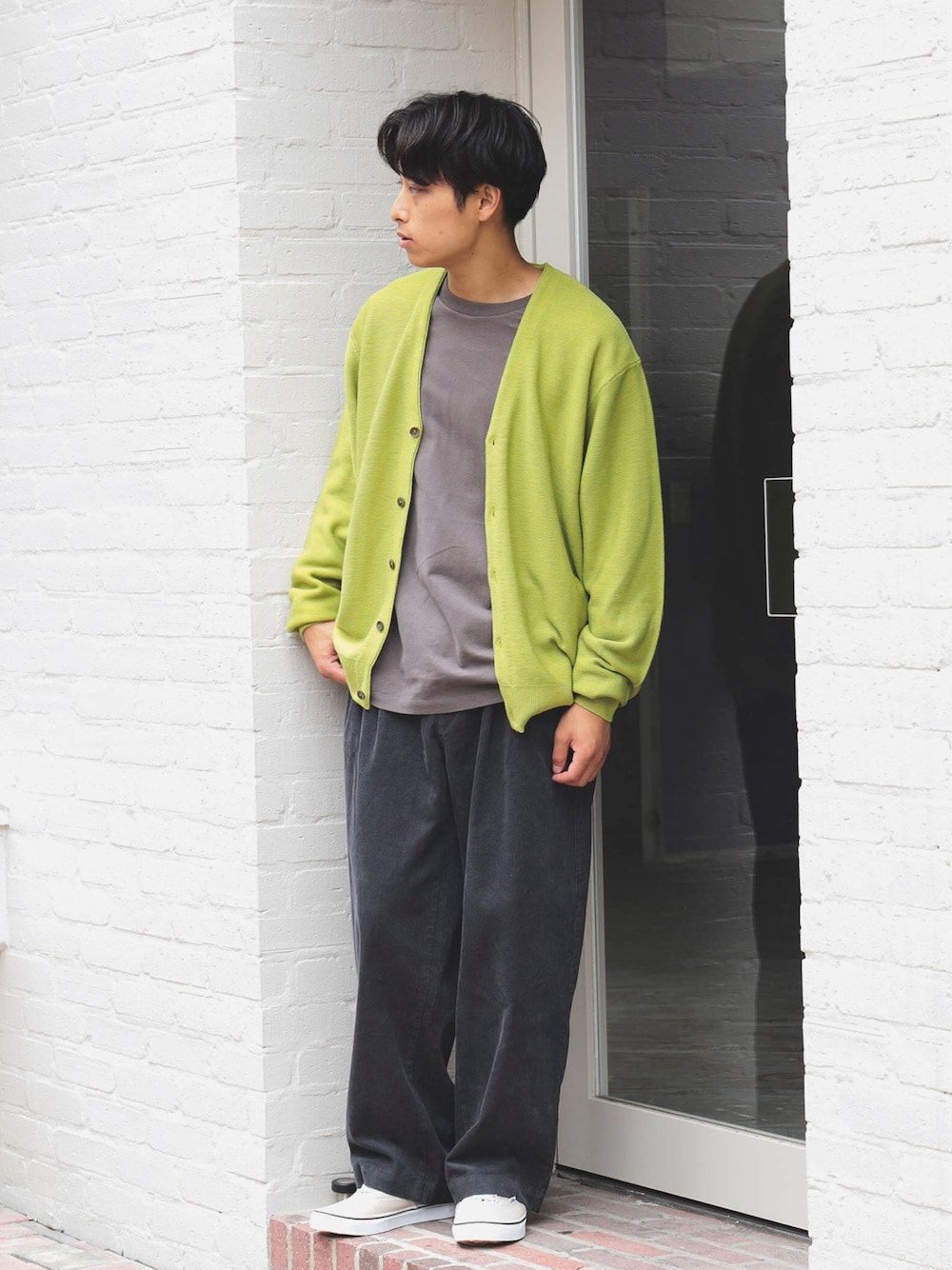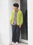 鮮やかなライムカラーが目を惹くカーディガン。おすすめです🍏