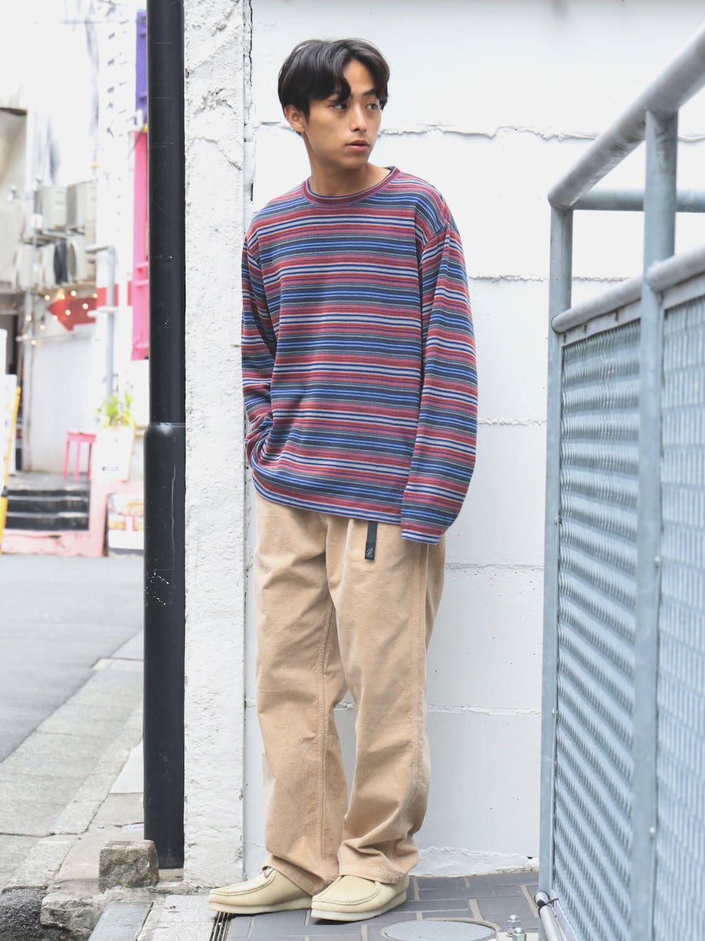 レトロな雰囲気のあるボーダーに、ベージュのアイテムを合わせて柔らかい雰囲気にしました☁️