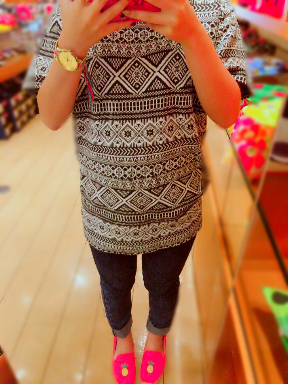 お母さんのクローゼットあさったら 可愛いトップス見つけて即着ちゃった💗 後ろのマリメッコ達は気にしないでください♫ バイト先でパシャりました📸✨💗