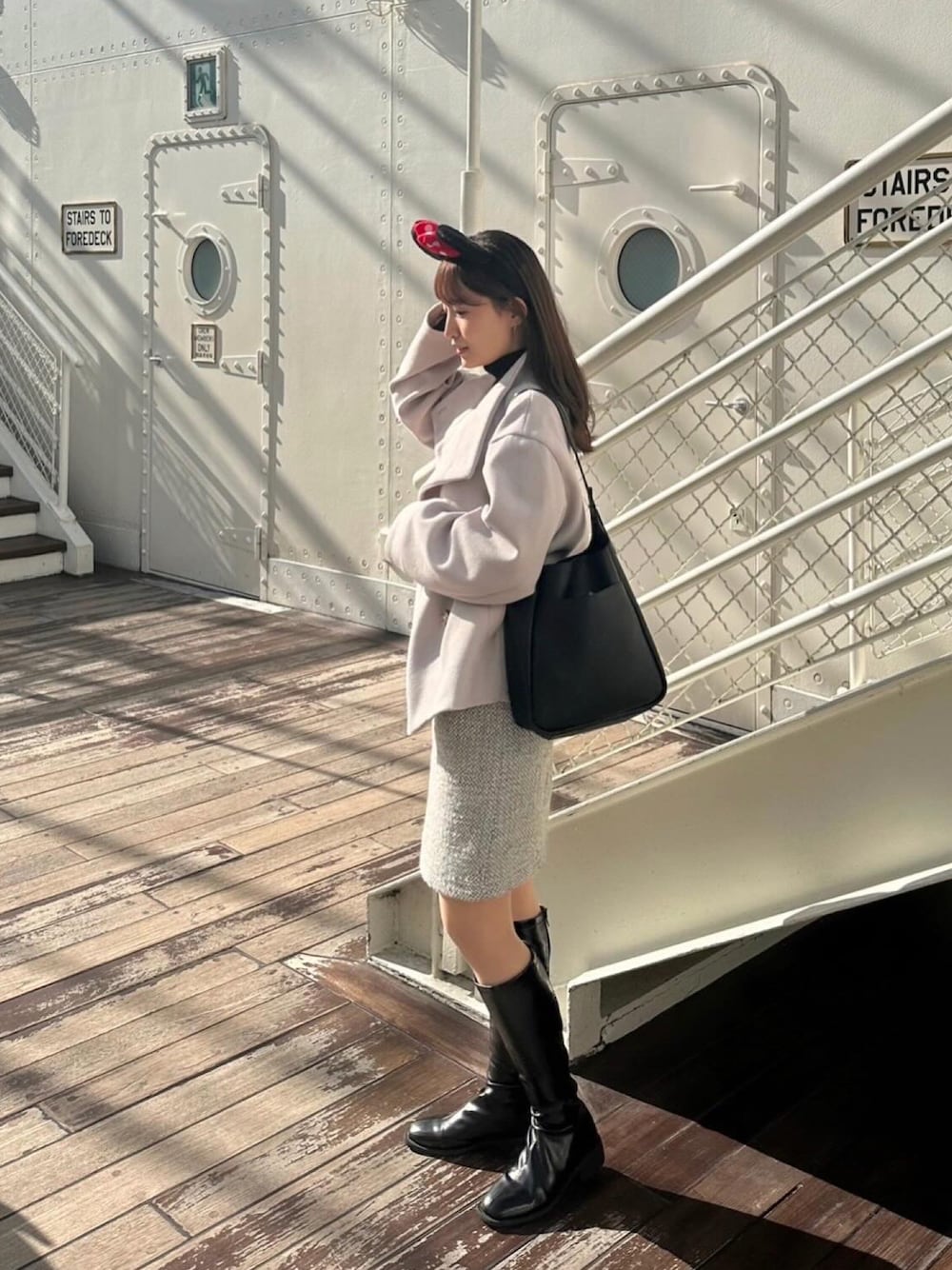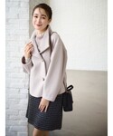みさかのその他アウター「◆≪S-LLsize≫ カットメルトン スタンドカラーショートコート/ボリューム袖」を使ったコーディネート