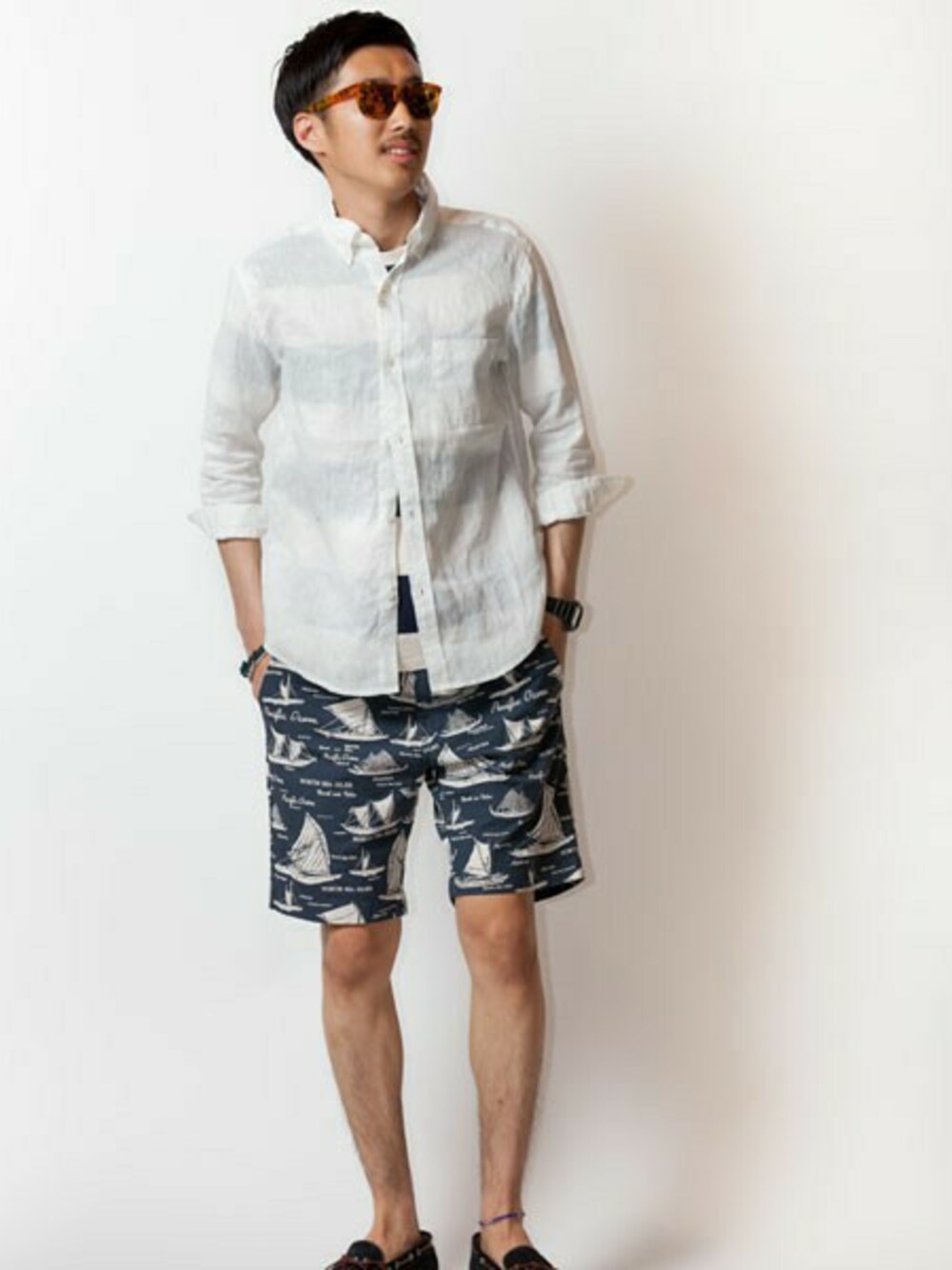リネンシャツから透ける、ボーダーTがポイントです!