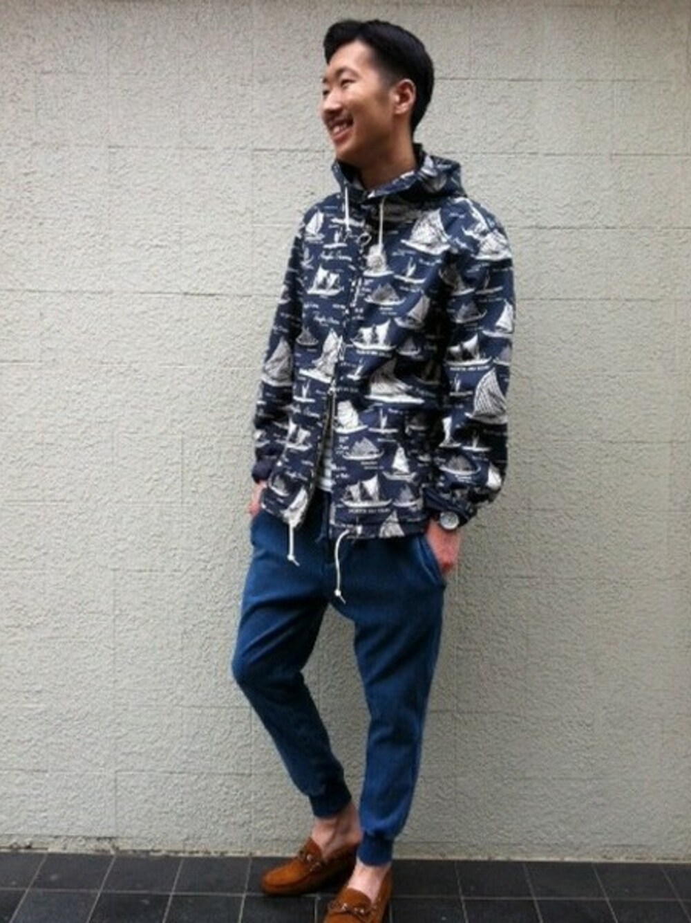 吉田明博のマウンテンパーカー「FREAK'S STORE 総柄マリンパーカー (ボートパーカー)」を使ったコーディネート