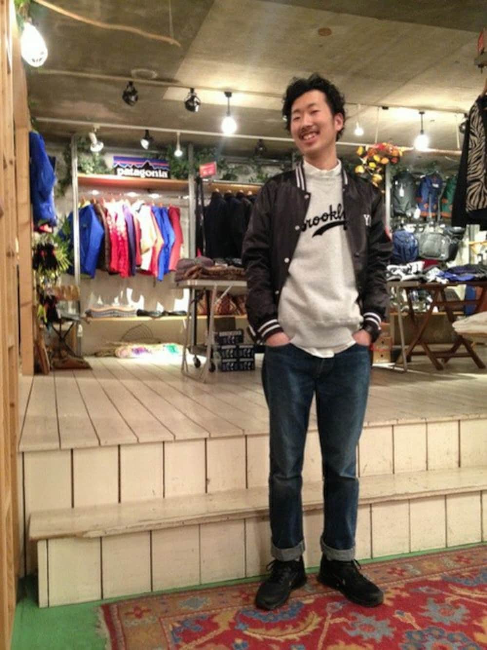 吉田明博のブルゾン「Champion/チャンピオン×FREAK'S STORE 別注サテンアワードジャケット」を使ったコーディネート