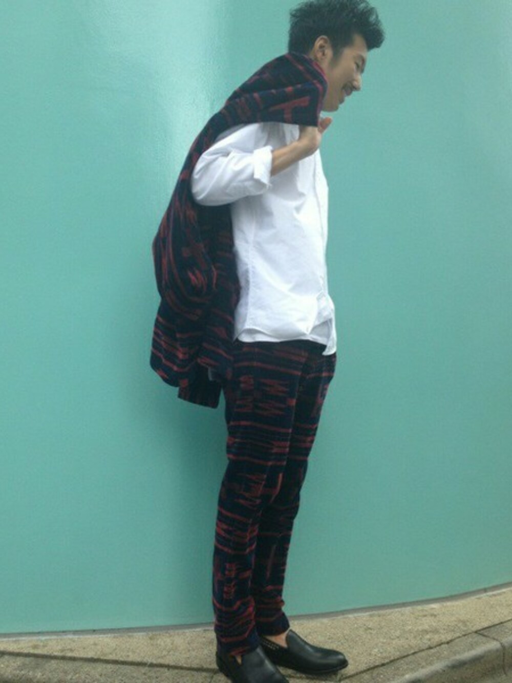 タオル生地のセットアップをシャツとレザーシューズでMIXコーディネート。 NYの冬サーフはこんな感じではないでしょうか。