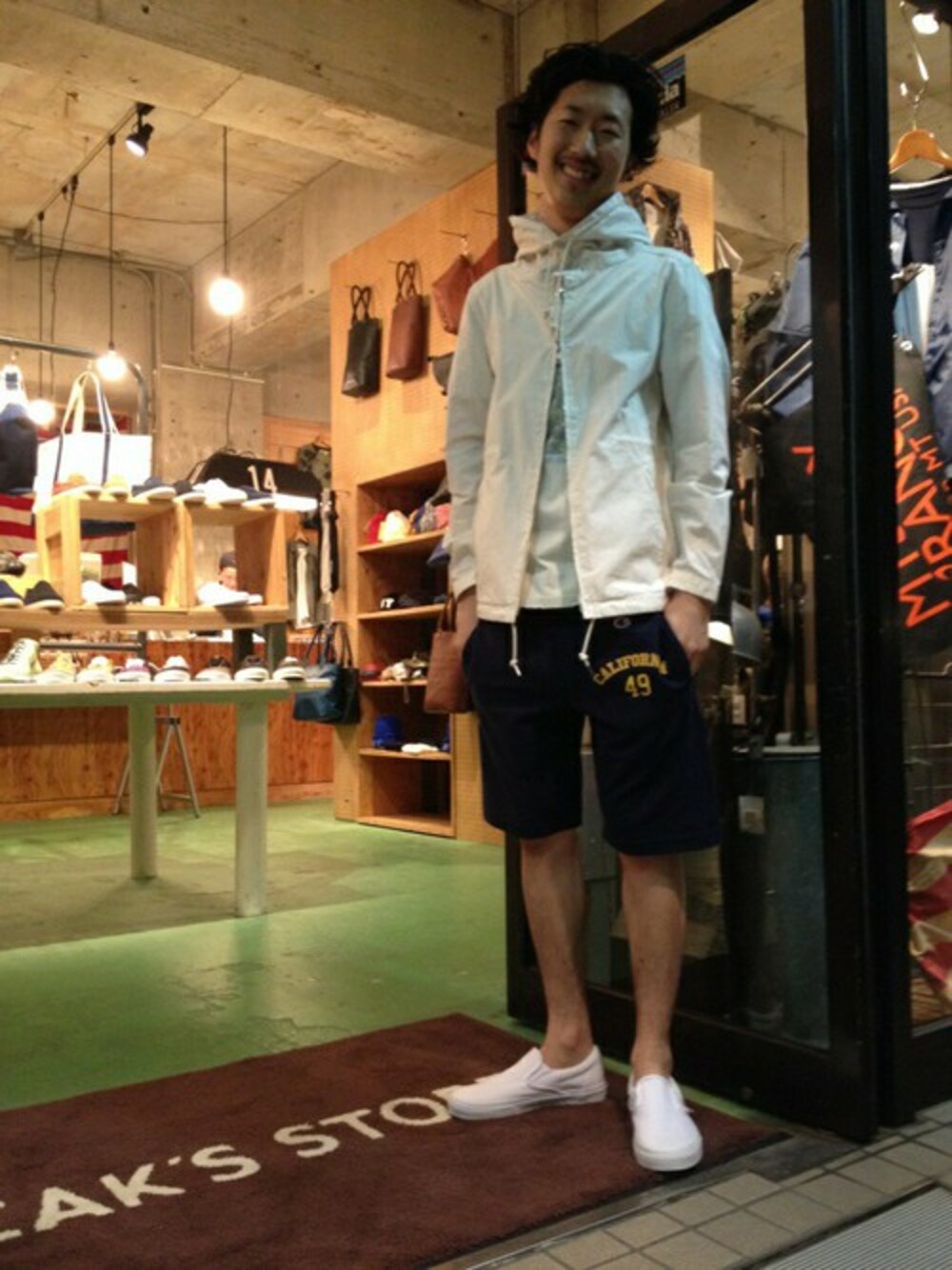 夏のショーツにも重くならないマリンパーカーは重宝します。ネイビー×ホワイトの2トーンコーデで爽やかに。