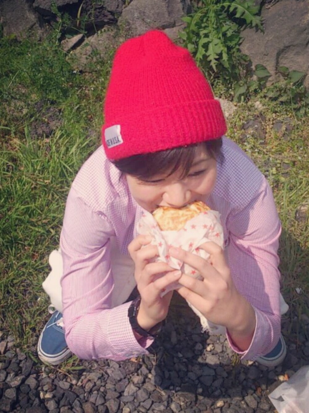 うんこ座りながら、ほおばりながら…