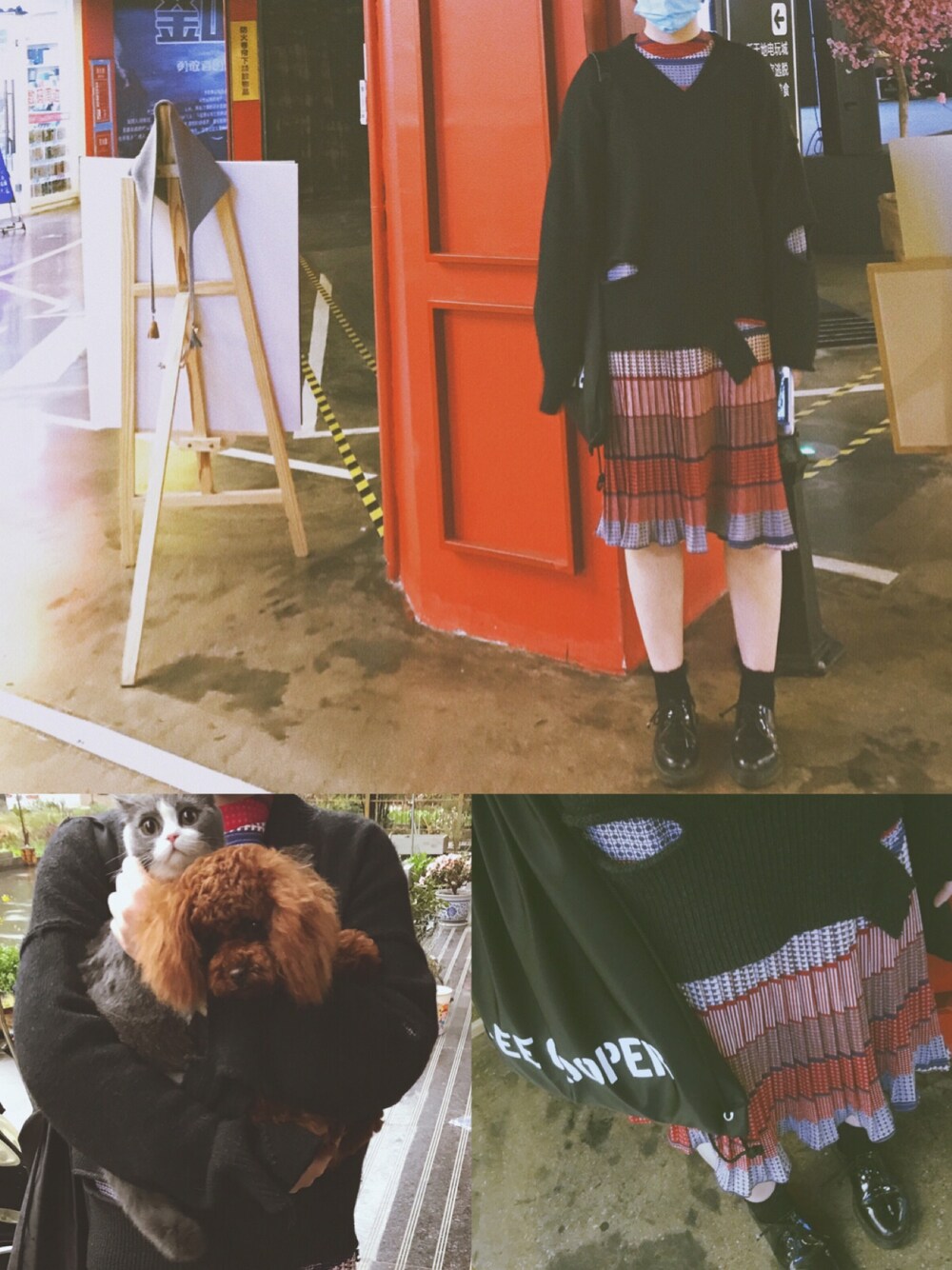 快速出门搭配,破碎感毛衣套连衣裙,红黑配色安全不落俗套。 带我家的猫猫和狗狗去洗澡,穿毛衣抱着她们有安全感哈…