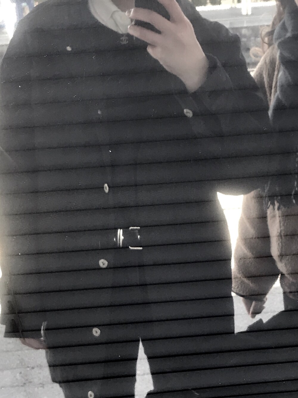 オールブラックコーデ。stussyのコーチジャケットお気に入り。襟の中にわざと入れてちらつかせるCHANELのネックレス