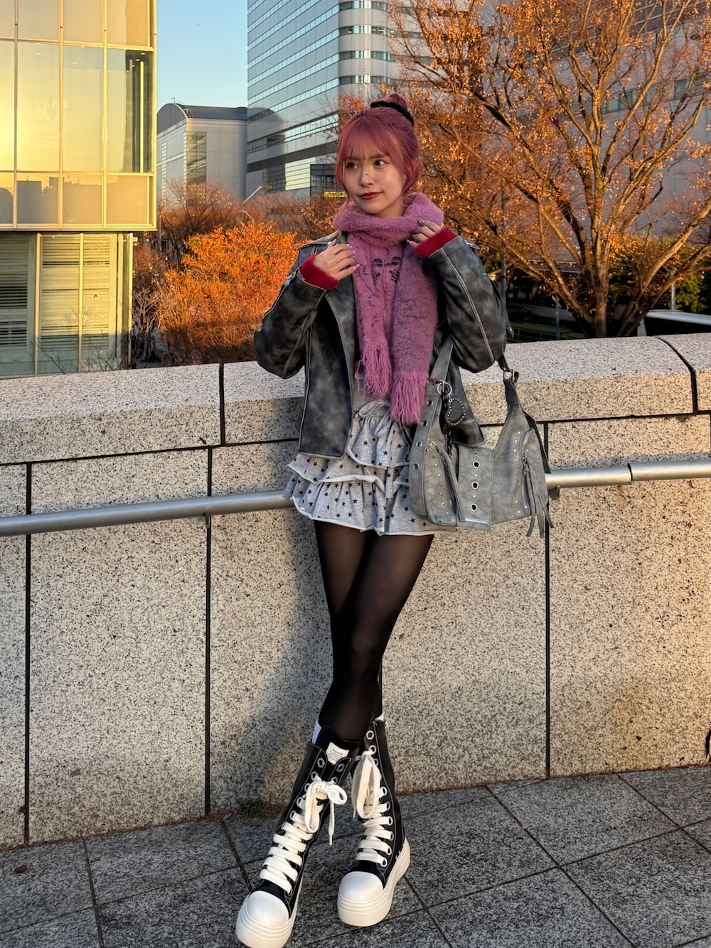 ブラック系のシューズ、グレー系のバッグを着用したレディースの冬コーディネートの4枚目の写真