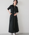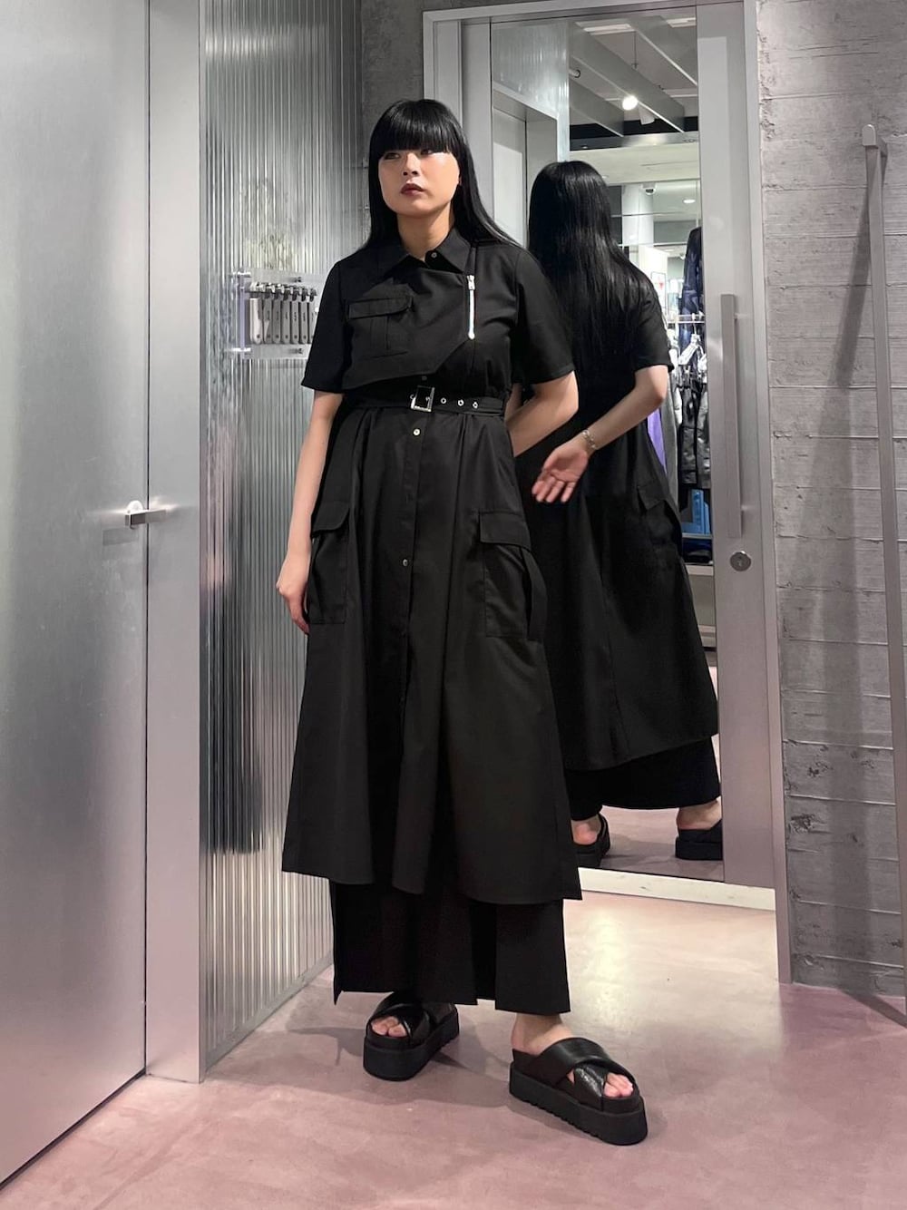 大人気カーゴワンピースのレイヤードスタイル 高身長丈悩み解決ポイント! ワイドパンツをレイヤードすると お洒落+丈カバーできます! 私のリアル解決策、ぜひ試してみてね🖤