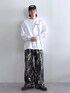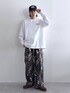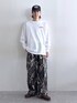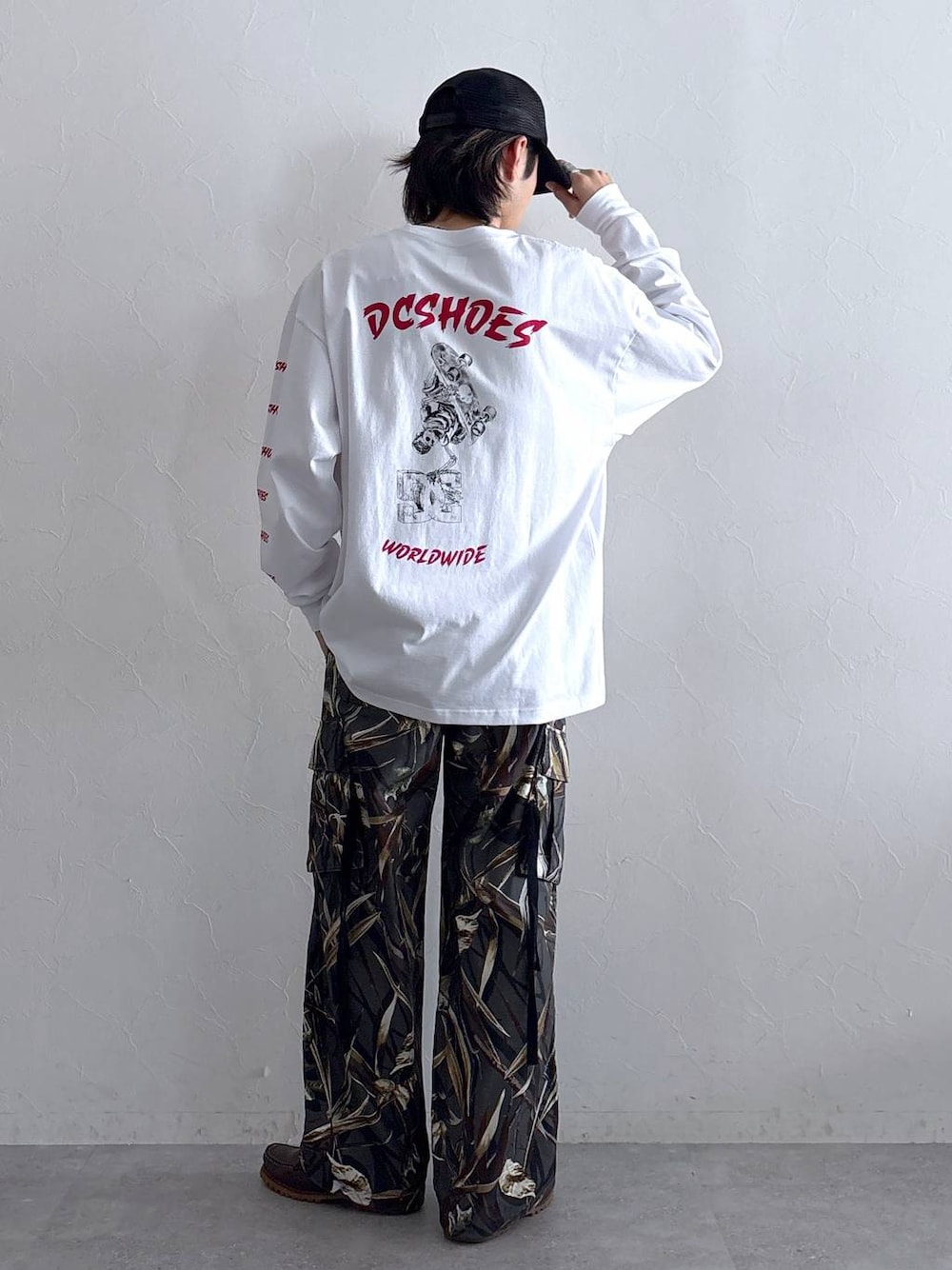 Instagram: モデル:175cm 59kg 細身肩幅大きめ ◉DCバックプリントロンT サイズ:L バックやフロント、袖などに施されたデザインが目を引く、一枚でサマになる長袖Tシャツ。身幅や肩幅を広くとったトレンドのオーバーサイズで仕上げ、ゆるっと感があるシルエットに。肌触り柔らかな着心地のいいコットン100%の素材です。程よい厚みの生地で仕上げているためオールシーズン通して快適にご着用いただけます。袖口には伸縮性のあるリブを施すことで締りのあるシルエットに。 ◉カモフラ柄カーゴパンツ サイズ:L 穿くだけでコーディネートの主役として活躍するカモフラ柄の一本。ガシっとした肌触り柔らかなコットン100%の素材で仕上げました。穿けば穿くほど味の出る素材で経年変化もお楽しみいただけます。裾のドローコードを絞ることでシルエットにメリハリのあるバルーンシルエットに変形可能。