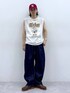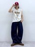 Instagram: モデル:175cm 59kg 細身肩幅大きめ ◉WEB限定キャラノースリ サイズ:L WEBでしか買えない限定のノースリーブが登場。 フロントやバックに施されたキャラクターが目を引く、一枚でサマになるアイテムです。ヴィンテージ感のある加工を施した、古着のような風合いを楽しめる素材で仕上げました。身幅や丈を大きくとったオーバーサイズで仕上げ、トレンド感のあるサイズ感に。アームホールを広くとることで、よりラフな印象をプラスし、夏でも快適に着用可能。 ◉ライトオンスデニムバレル サイズ:L もも回りには大きくゆとりを持たせ裾をすぼめたバルーンシルエット。全体的にルーズなサイズ感で、快適な履き心地を実現。夏に適した風通しがよく軽さが特徴のライトオンスデニム生地を採用しました。ウエストサイド部分にはゴムを内蔵することで、ベルトレスでフィット感のあるディテールに。シンプルな合わせでもシルエットで印象を持たせるトレンドボトムスです。