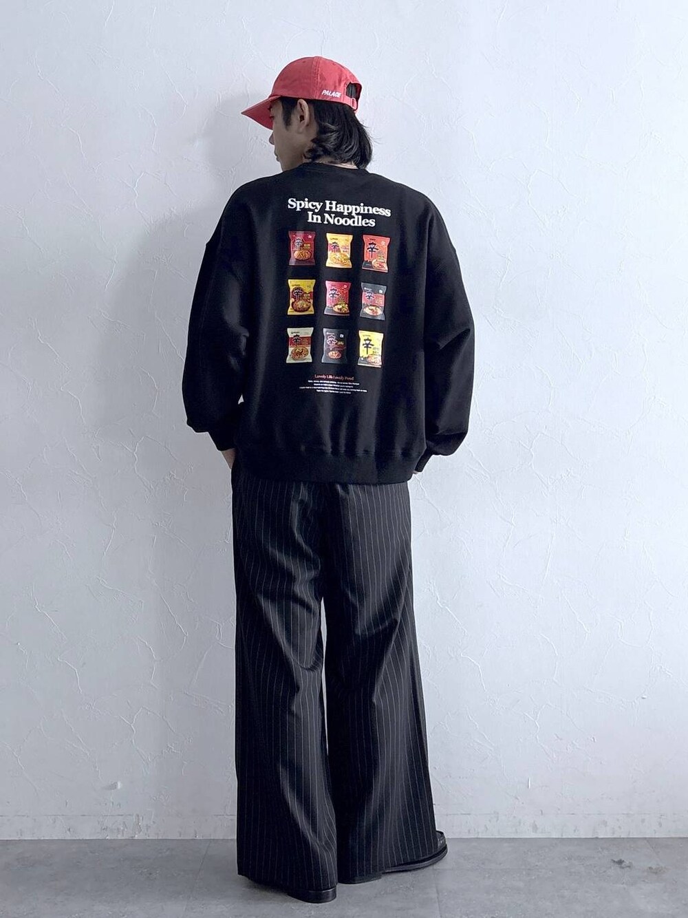 Instagram: モデル:175cm 59kg 細身肩幅大きめ ◉辛ラーメンコラボパッケージスウェット サイズ:L 大人気インスタントラーメン【辛ラーメン】とのコラボアイテム。パッケージデザインを大胆にプリントした、インパクト抜群のスウェットです。1枚着として主役級の存在感ですが、フロントはシンプルなので、インナーとしても使い勝手抜群。ユニセックスで使えるので、ご自身用としてはもちろん、ギフトにも最適です。 ◉TRワイドストレートパンツ サイズ:L RAGEBLUEの定番ボトムスが更にアップデートして登場。もも回りから裾にかけてストンと落ちるワイドストレートシルエットで、脚長効果も得られるシルエットに。オールシーズン通して使える程よい厚みの素材で、どんなシーンでも着用可能です。ウエスト背面にゴムを内蔵することで、ベルトレスでも快適な着用感を実現。今期はINスタイルがよりしやすいようにゴムの位置を背面に変更しました。 ◉ステンレスチェーンネックレス ベーシックでどんなアイテムでも合わせやすい定番のチェーンネックレスが登場しました!オールステンレス素材なので錆づらく、長く愛用できるのも嬉しいポイント〇