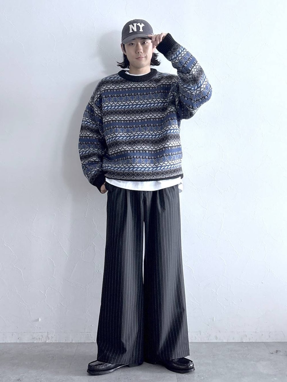 Instagram: モデル:175cm 59kg 細身肩幅大きめ ◉辛ラーメンコラボジャガードニット サイズ:L 大人気インスタントラーメン【辛ラーメン】とのコラボアイテム。ボディに全体に配したジャガード柄が目を惹く、ファッション性の高いニットです。デザインの中に「辛」の文字がさりげなく落とし込まれており、コラボを象徴するアイテムに仕上がりました。ユニセックスで使えるので、ご自身用としてはもちろん、ギフトにも最適です。 ◉TRワイドストレートパンツ サイズ:L RAGEBLUEの定番ボトムスが更にアップデートして登場。もも回りから裾にかけてストンと落ちるワイドストレートシルエットで、脚長効果も得られるシルエットに。オールシーズン通して使える程よい厚みの素材で、どんなシーンでも着用可能です。ウエスト背面にゴムを内蔵することで、ベルトレスでも快適な着用感を実現。今期はINスタイルがよりしやすいようにゴムの位置を背面に変更しました。