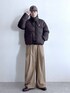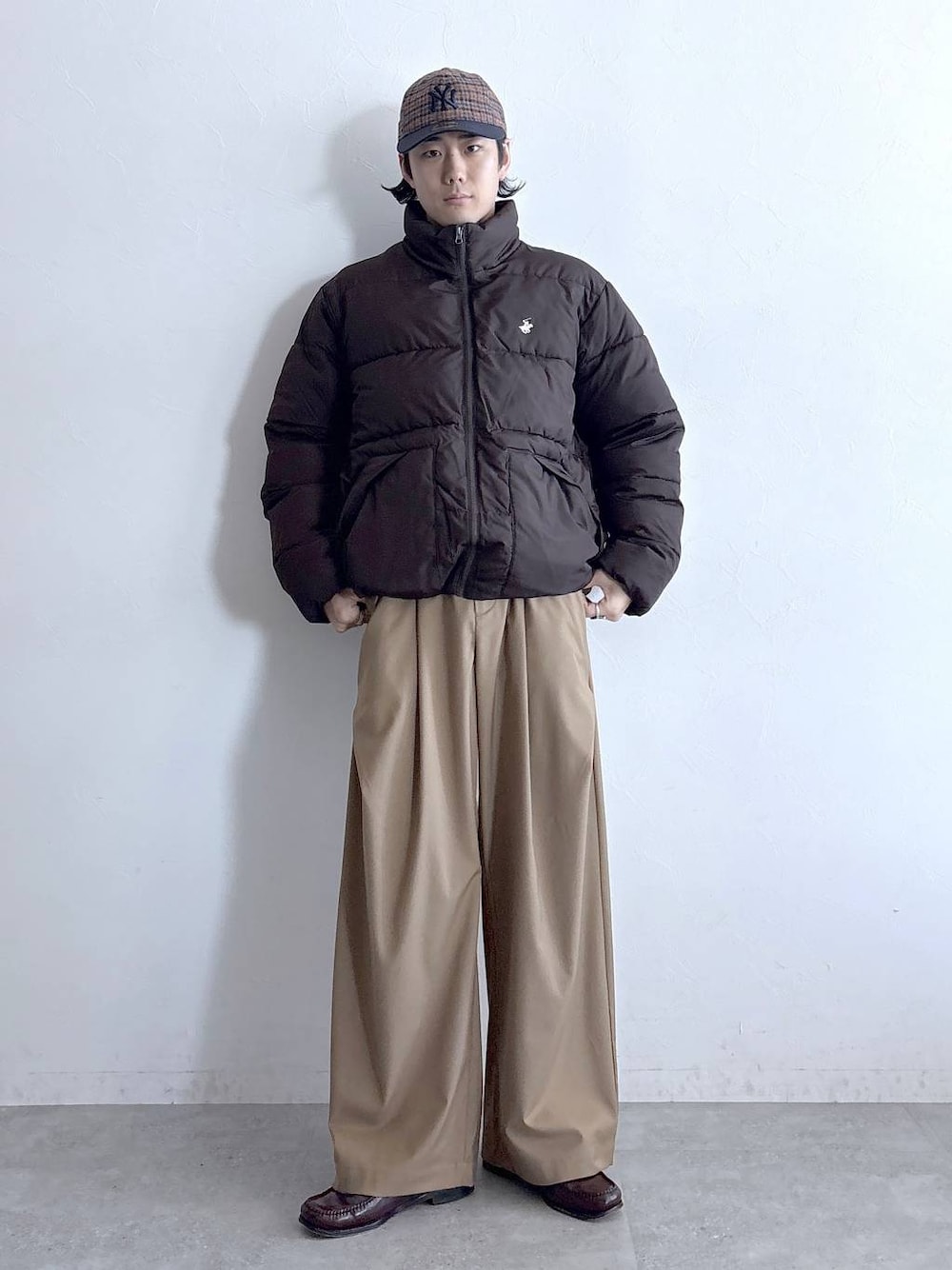 Instagram: モデル:175cm 59kg 細身肩幅大きめ ◉BH中綿パフジャケット サイズ:L どんなスタイルにも相性が良いシンプルなデザインでお好みのスタイルでお楽しみいただけます。定番の中綿ブルゾンのディテールで仕上げ着回しのしやすい一着!保温性が高く軽量な中綿を使用することで快適な着用感を実現。 肩幅/身幅を広くとったルーズシルエット/オーバーサイズで仕上げトレンド感を作ります。裾のドローコードを絞ることで下からの寒い風も遮りより保温性が高い仕上がりに。 ◉ARCH TUCHバギースラックス サイズ:L 膝周りに施された深めのタックが、独特な3Dシルエットを作るバギースラックス。バレル/コクーンパンツのようなカーブデザインが、ボリュームのあるアウトラインを生み出し、トレンド感を演出します。サイドから斜めに深めのタックを入れることで、インパクトのあるデザイン性だけでなく、可動域を増やし、日常のさりげない動きをサポート。ウエストサイドにゴムを内蔵することで、タックインスタイルが叶いながらも、着用時のフィット感も快適です。