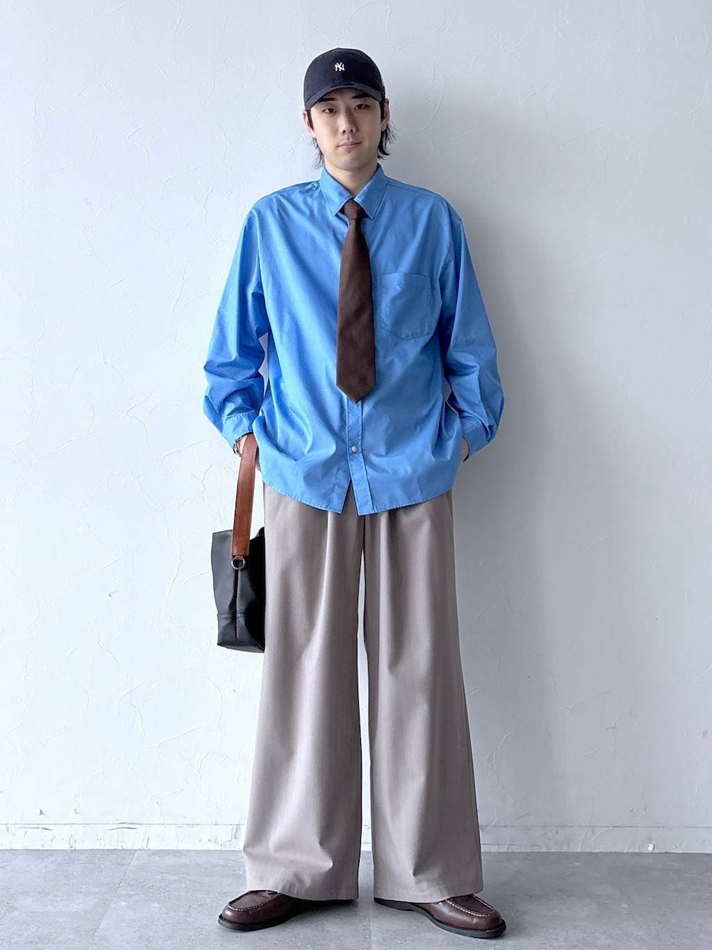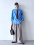 Instagram: モデル:175cm 59kg 細身肩幅大きめ ◉80TCブロードシャツ サイズ:L 上品な質感と清涼感で、高級感を創り上げるレギュラーカラーシャツ。80番手の細糸で丁寧に織ることにより、薄手で軽く、上品な光沢を持たせた仕上がりに。ポリエステルと綿を混紡したTC生地は、吸湿性が高く、速乾性にも優れており、機能性の高い素材です。裾をラウンドカットで仕立てているので、普段使いからビジネスシーンまで幅広く活躍します。表に縫い目が出ない裏前立て仕様にすることで、よりクリーンな印象にまとめています。 ◉TRワイドストレートスラックス サイズ:L ゆとりのある腿周りから裾のかけてストンと落ちる、ワイドストレートシルエットで、脚長効果も抜群です。サイドポケットにジップデザインを採用し、より機能性の高い一着に仕上げています。テトロン(ポリエステル)とレーヨンを混紡したTR生地を使用。ポリエステルの「耐久性」と「速乾性」、レーヨンの「柔らかさ」と「ドレープ性」といった、各素材の特徴を兼ね備えています。また、シワにもなりにくく、洗濯洗いも可能なので、お手入れもしやすく仕上げました。