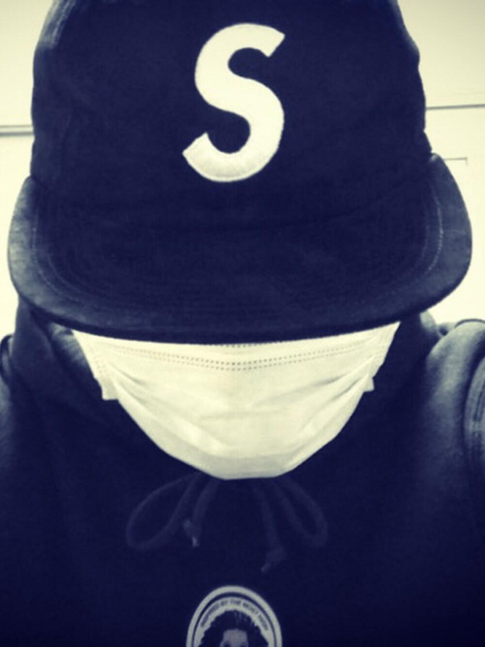 ブラック系のキャップを着用したメンズの冬コーディネートの1枚目の写真