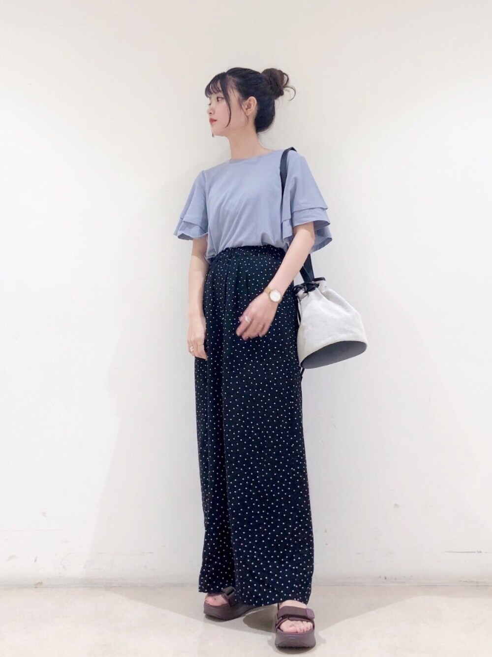 ダブルフリルT❤️1000円以下です! ドットのパンツはウエストが調節ひもで 調節できるのでとっても重宝してます🎉 ハイウエストで履いて足長効果◎ レーヨン素材でとっても涼しい✨✨