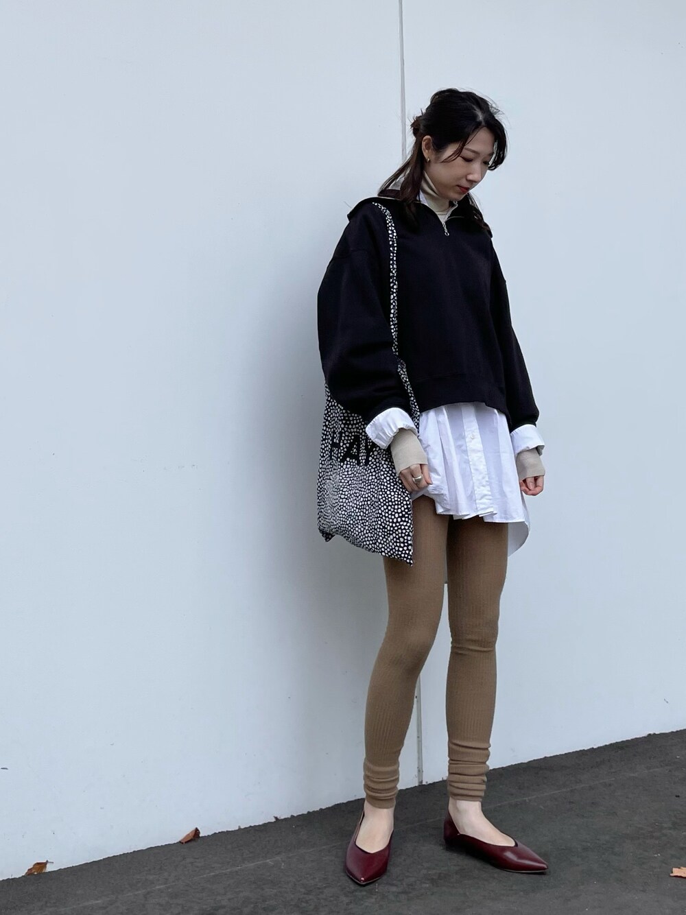 重ねに重ねて、これだけレイヤードすればアウターいらずでした✌🏻 上にボリュームがある分、下はすっきりと、カジュアルになりすぎないようにきれいめなシューズでバランスを取りました👠
