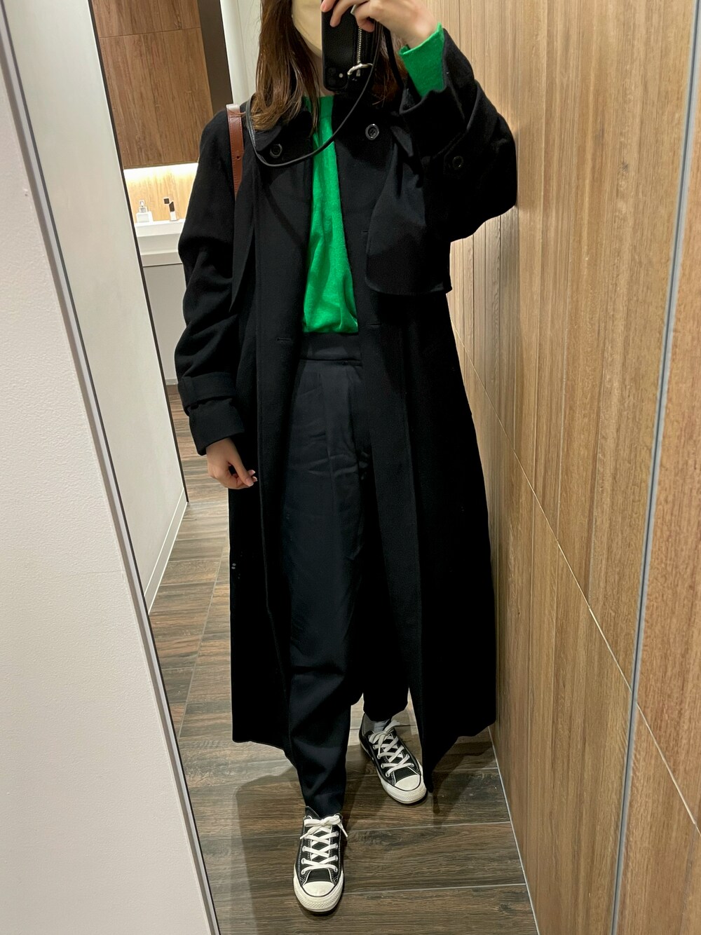 グリーンのニット、肩と袖のところがパフになってて可愛いのがあまり伝わらず🥲💭もう少しでブーツしか履けなくなると思うとスニーカーが履きたくなる👟