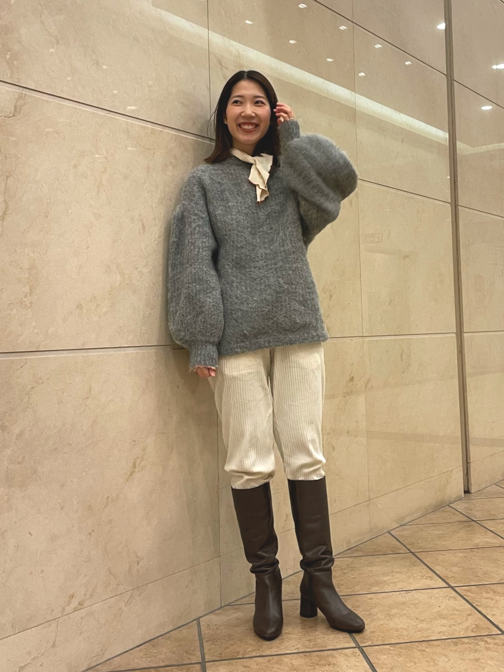 カーディガンを前後逆にきてニット風に🫶 上下ベースレンジで柔らかくも品のあるスタイルに🤍