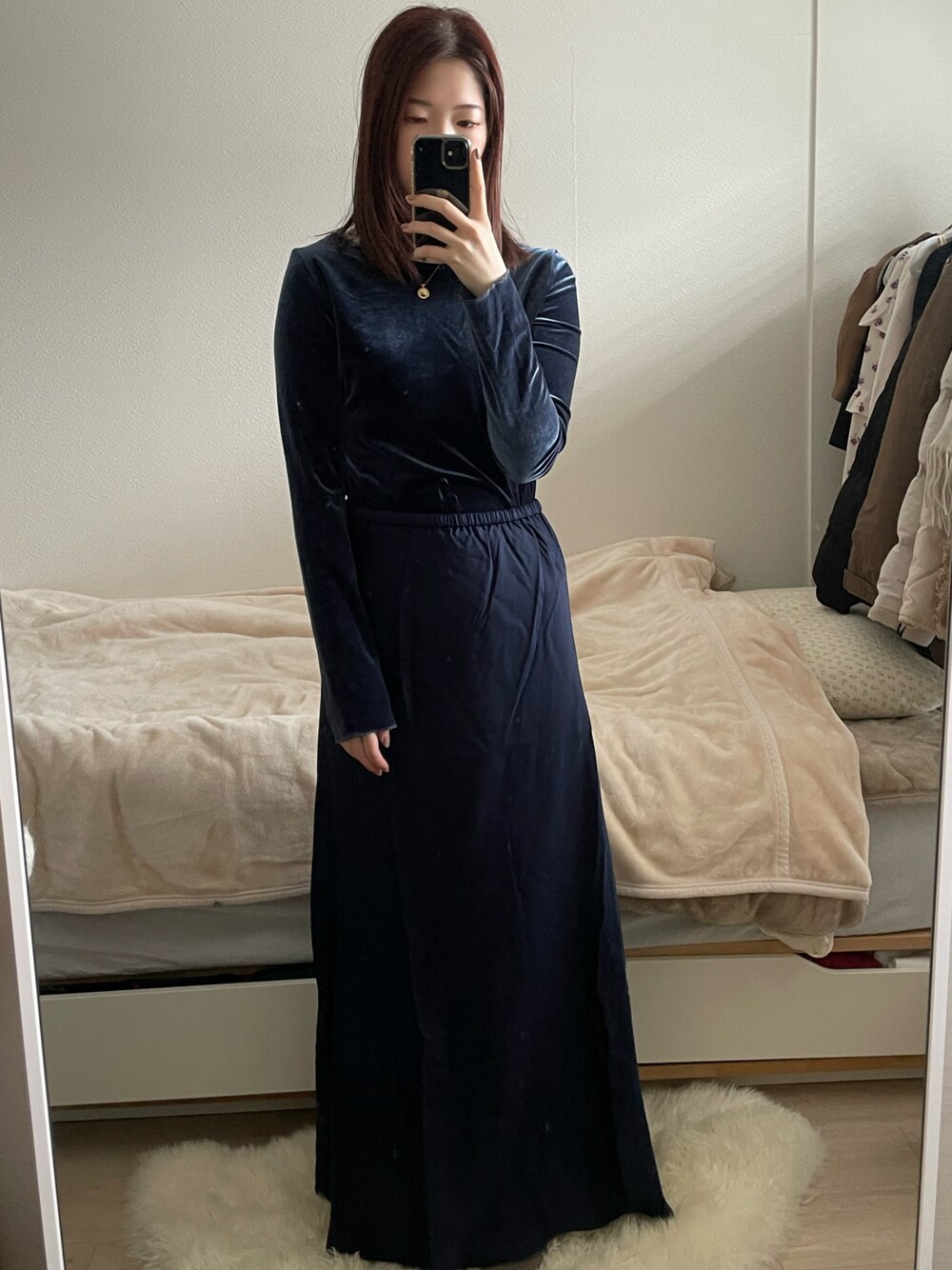 オールネイビー🫐 トップスはカップ付きで前後逆に着れるので優勝だし、 サテンスカートは楽天で2色買いするほど履き心地いいです