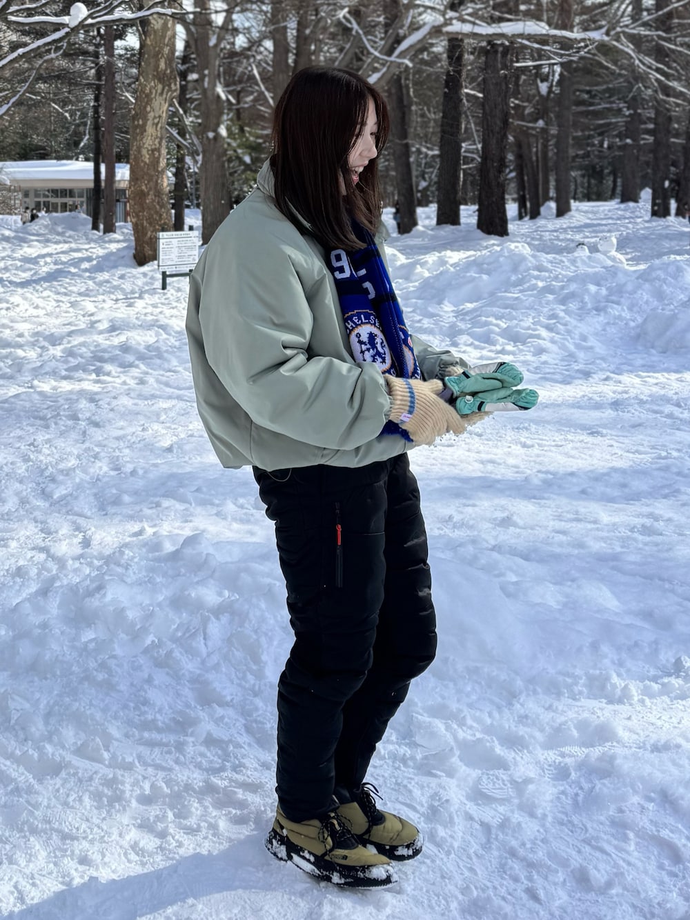 雪遊びスタイル⛄️ 靴は25サイズのしかなかったですが、24.5着用してます。 普段23ですが、中敷引いて厚めの靴下履いたら問題なく履けます👞