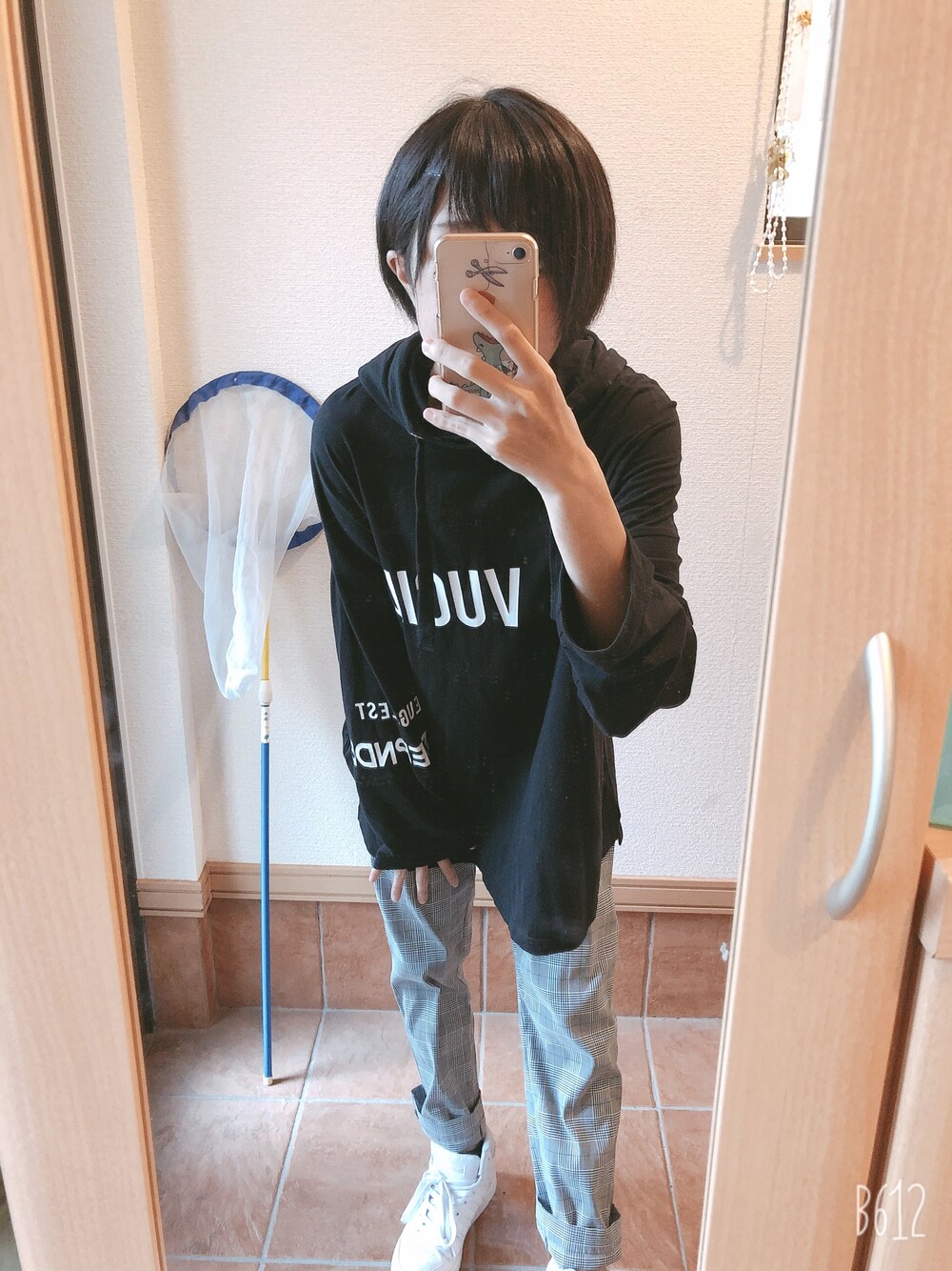 こんにちは! ご覧頂きありがとうございます🙇♀️ 今日は大雨で寒いので フード付ロンTと グレンチェックのパンツで 冷え対策してます🙌
