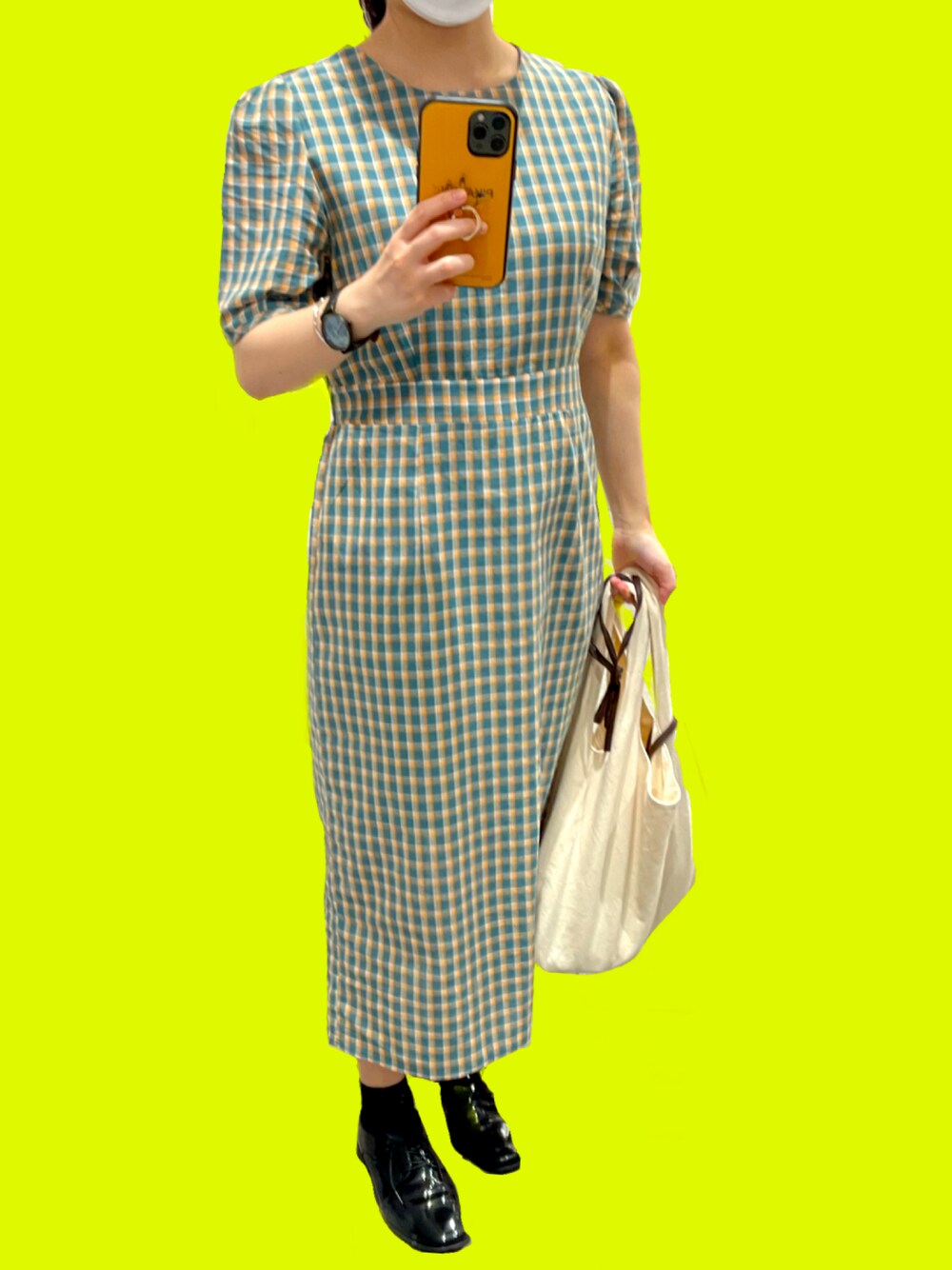 ウォールナットのワンピース/ドレス「チェックパフスリーブワンピース」を使ったコーディネート