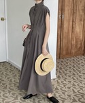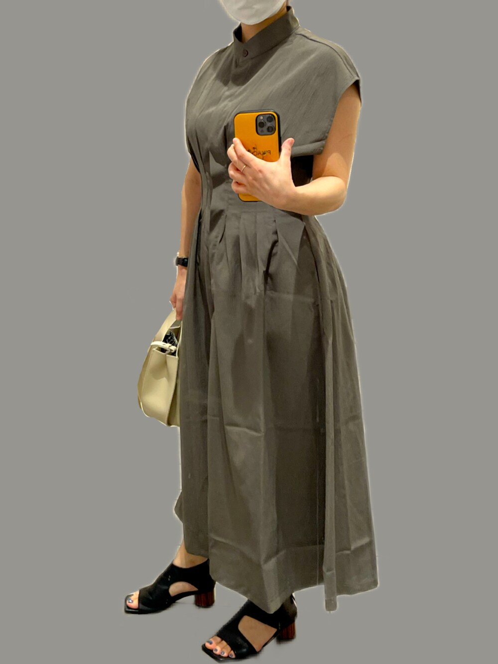 ウォールナットのワンピース「フロントタックバンドカラーフレンチスリーブロングワンピース」を使ったコーディネート