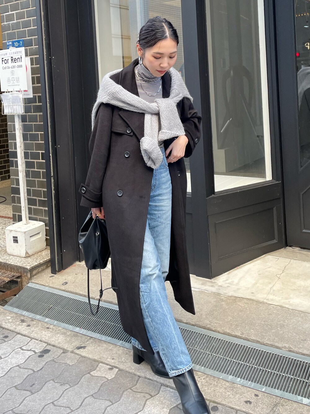 ロングコートコーデ🖤 シンプルなデザインで着回し抜群✨✨ この冬いっぱい着る🤤♡ Wool trench coat / ウールトレンチコート